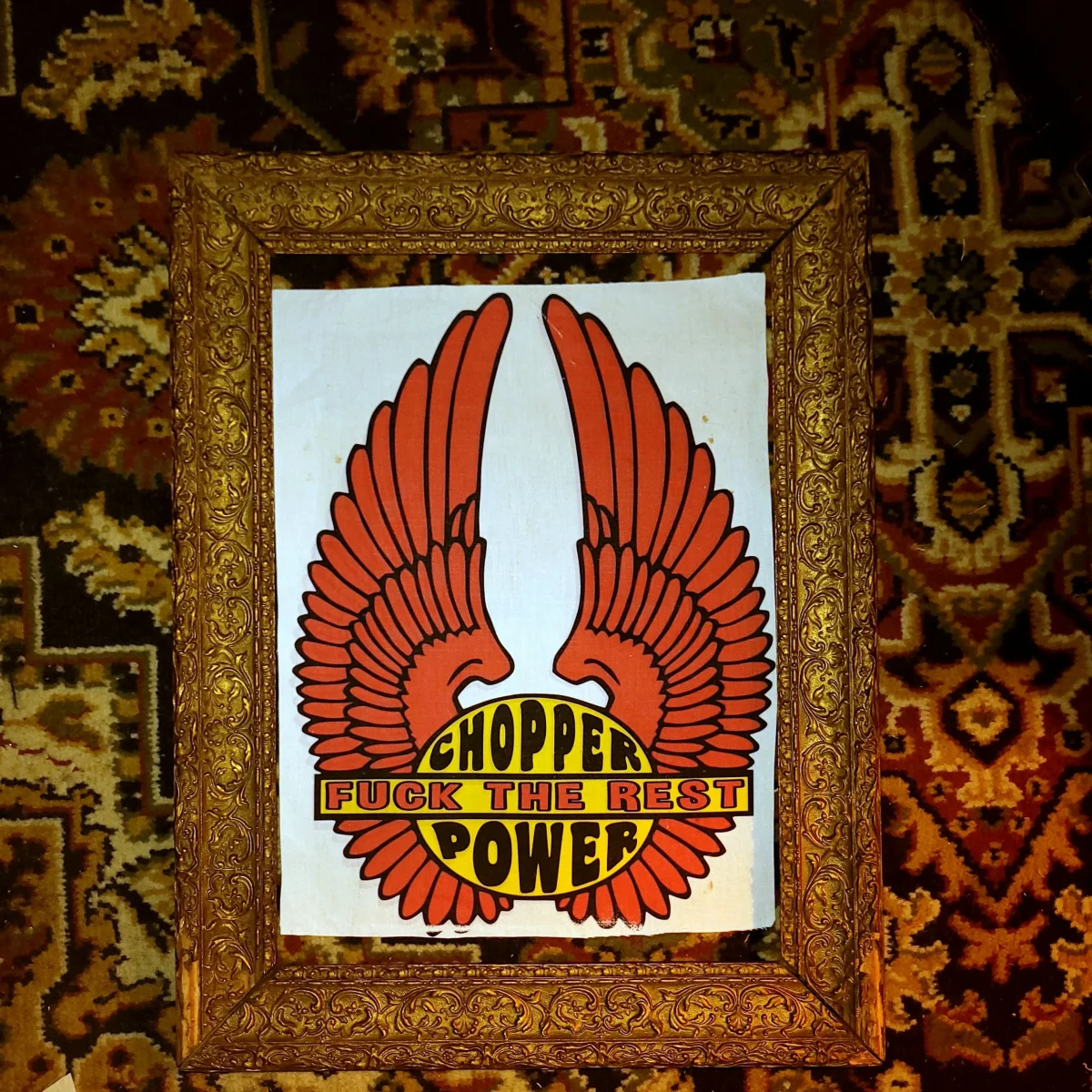 Backpatch « Chopper power, fuck the rest » printed on old cotton canvas. To be sew on jackets or to putt on wall. Patch dorsal » chopper power fuck the rest » imprimé sur coton ancien à coudre sur veste ou à encadrer Taille approximative/ approximate size A3