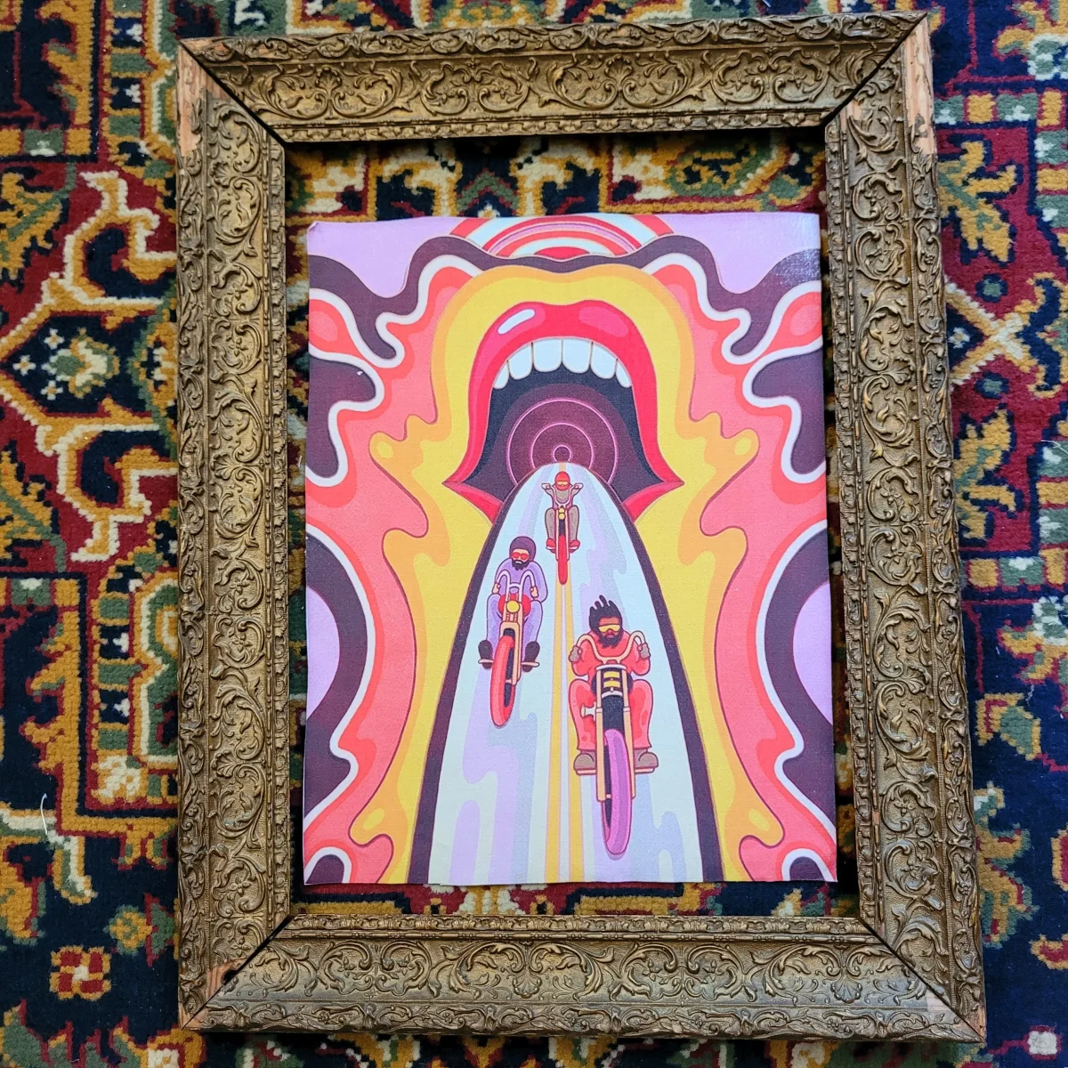 Backpatch « Psychedelic Choppers » printed on old cotton canvas. To be sew on jackets or to putt on wall.