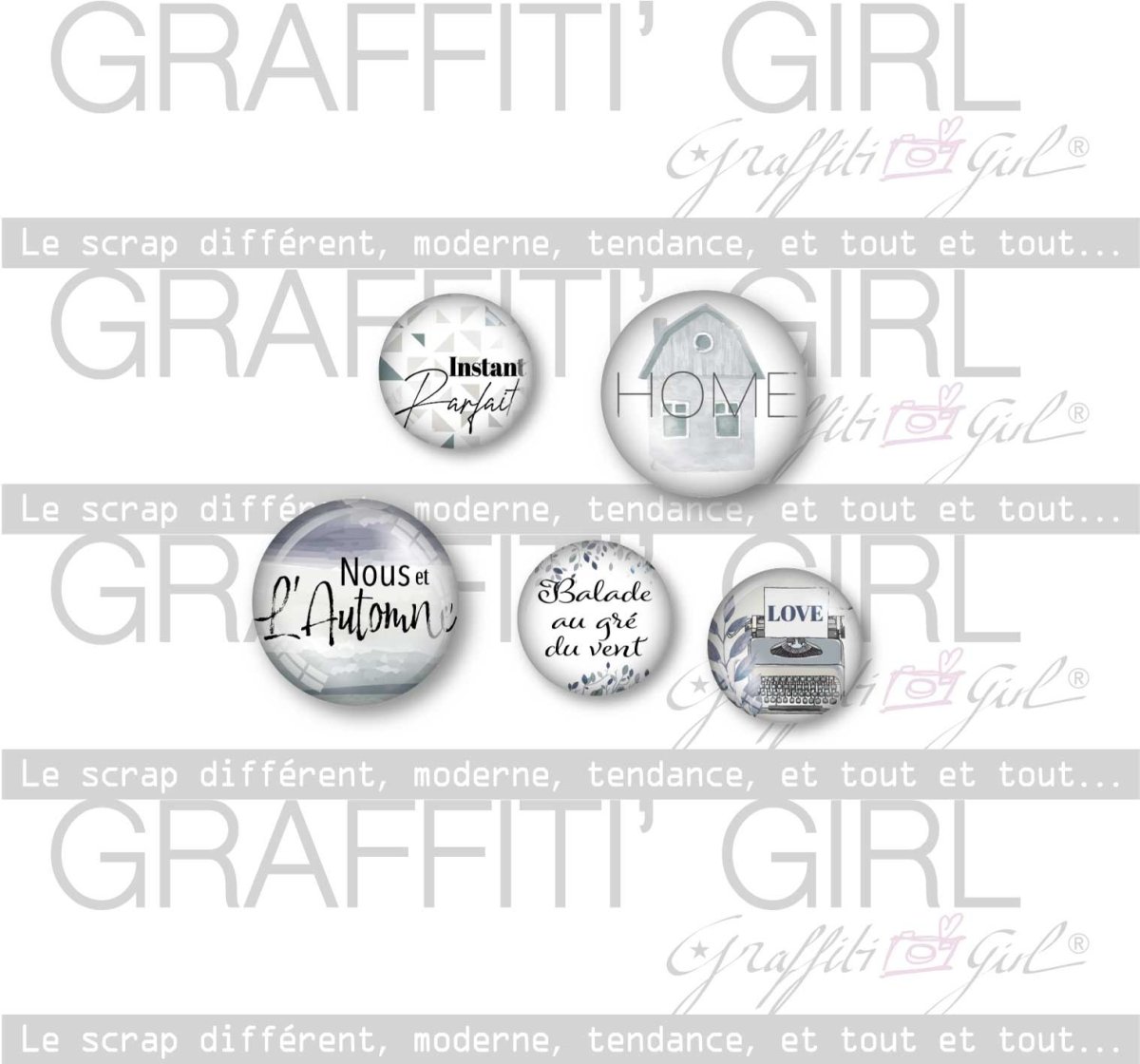 Nom: Cohérence Produit: 5 Badges Taille: diamètre de 2,5 cm et 3,2 cm Marque: Graffiti Girl Collection: Cohérence Le petit plus: Vendus dans une pochette de papier kraft recyclé, A7. Utilisation: Dos plat, s’utilise avec double face ou mousse 3D (non fournis).
