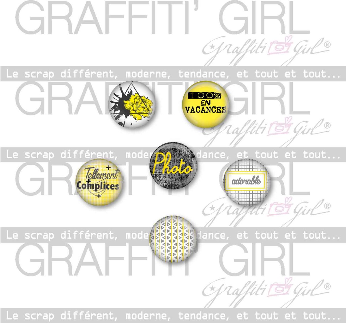Le lot d’embellissements badges Fraicheur de la marque Graffiti Girl se compose de six badges dans un combo de couleur jaune et noir. Le combo se mariera très bien avec la collection Scoop. Ce set de badges est polyvalent et aborde les thèmes de la photo, la complicité et les vacances. Un badges mot adorable et un badge fleur façon brune et aussi présente. Enfin, Le badge motif géométrique vient compléter le lot en apportant une touche graphique. Ces badges Fraicheur sauront donc être de très bons embellissements indispensables pour affiner votre création de scrapbooking.