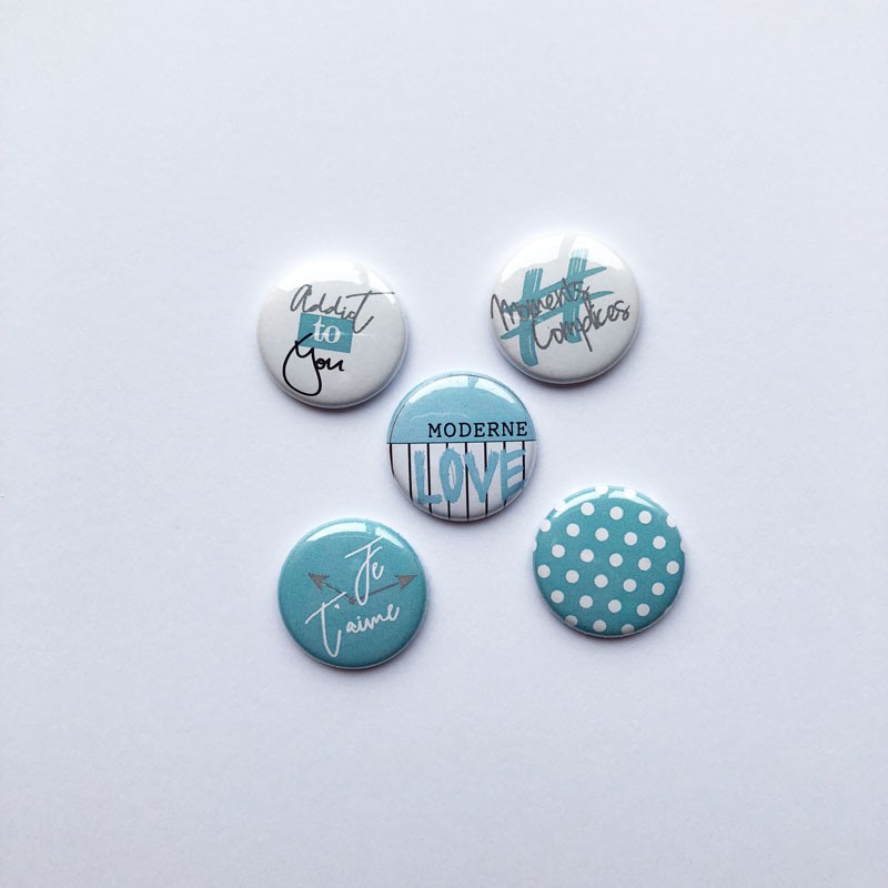 Le lot d’embellissements badges Infini de la marque Graffiti Girl. Ce lot est composé de cinq badges dans un combo bleu et blanc pouvant très bien se marier avec la collection Géomavie. Il y a un badge motif étoile tendance qui passe sur pleins de créations de scrapbooking. Les autres sont des badges textes gentils et doux pour scrapper ceux que vous aimez ! Ces badges Infini sauront donc être de très bons embellissements indispensables pour affiner votre création de scrapbooking.