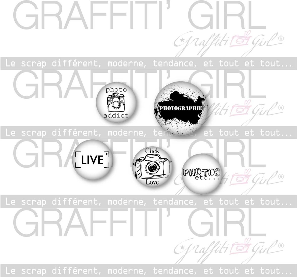 Nom: Négatif Produit: 5 Badges Taille: diamètre de 2,5 cm et 3,2 cm Marque: Graffiti Girl Collection: Négatif Le petit plus: Vendus dans une pochette de papier kraft recyclé, A7. Utilisation: Dos plat, s’utilise avec double face ou mousse 3D (non fournis).