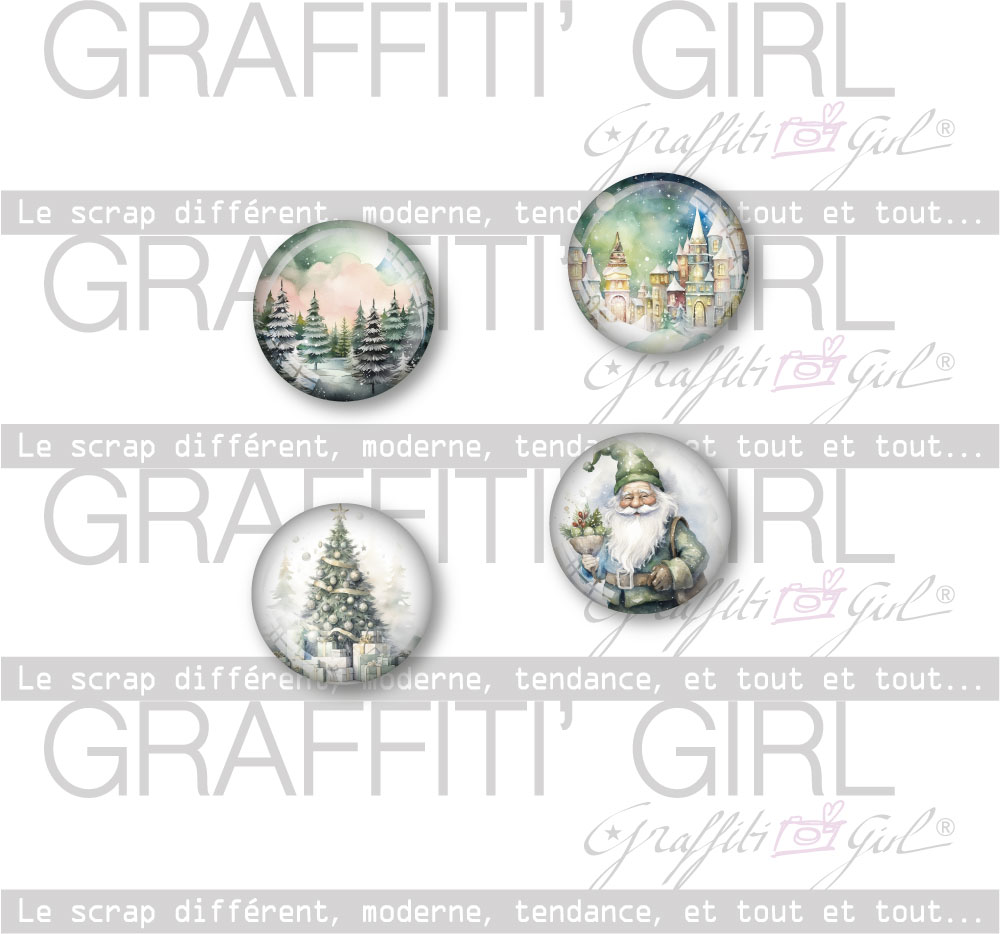 Nom: Noël enchanté Produit: 4 Badges Taille: diamètre de 3,2 cm Marque: Graffiti Girl Collection: Noël enchanté Le petit plus: Vendus dans une pochette de papier kraft recyclé, A7. Utilisation: Dos plat, s’utilise avec double face ou mousse 3D (non fournis).