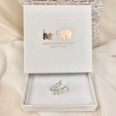 Livré dans son écrin 8,5×8,5cm Chaton et Monsieur Ours ainsi qu’une carte message pour laisser libre cours à ta poésie .