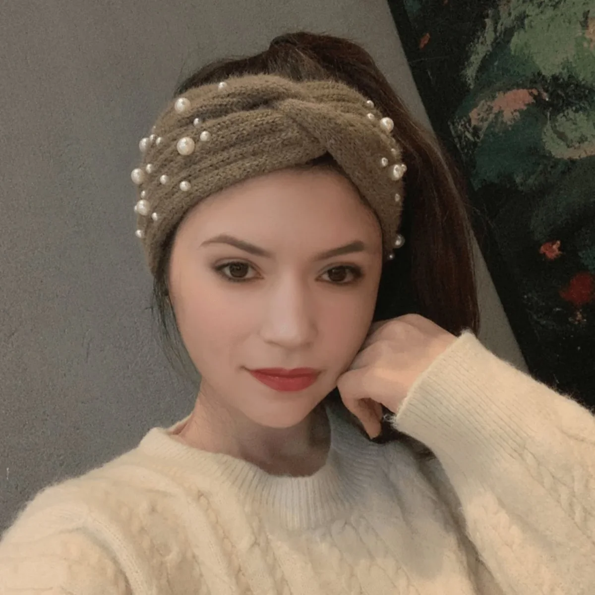 Bandeau en laine avec perles