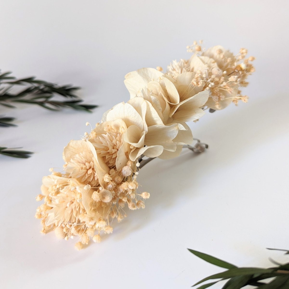 Barrette à cheveux fleurie pour coiffure de mariage en fleurs séchées & stabilisées beiges, Luna