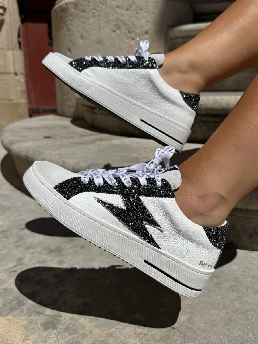Retrouvez ce modèle iconique de chez Semerdjian, le modèle MAYA dans son coloris blanc et paillettes argentés et noires dans votre boutique De La Mode la Rochelle.
