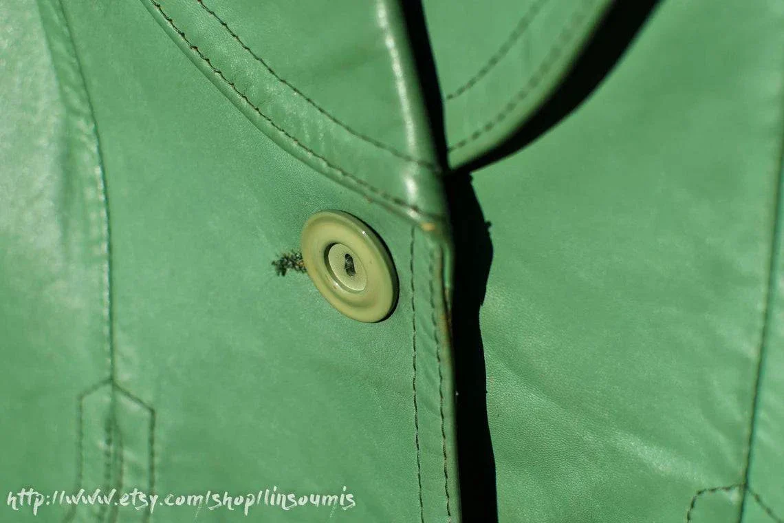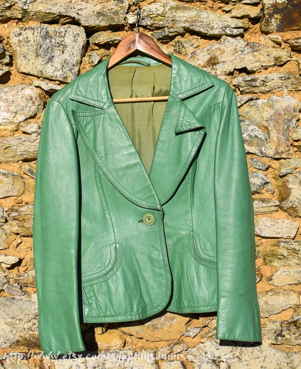 Blazer cuir vert pâle.
