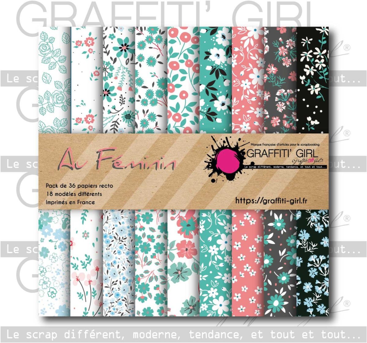 Bloc de 36 feuilles 170 gr, recto, format 15×15. Collection « Au Féminin ». 18 designs différents (2 exemplaires de chaque) Utilisation: Ces papiers conviennent parfaitement au Scrapbooking, carterie, Home-déco, etc. Ils peuvent être tamponnés, déchirés, perforés, selon votre envie.