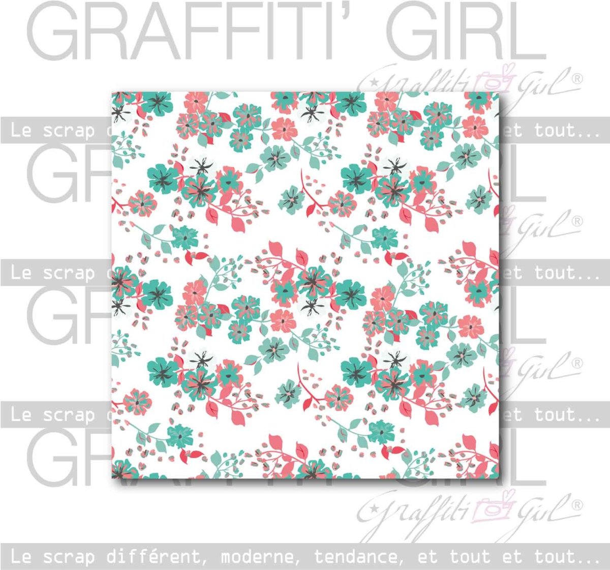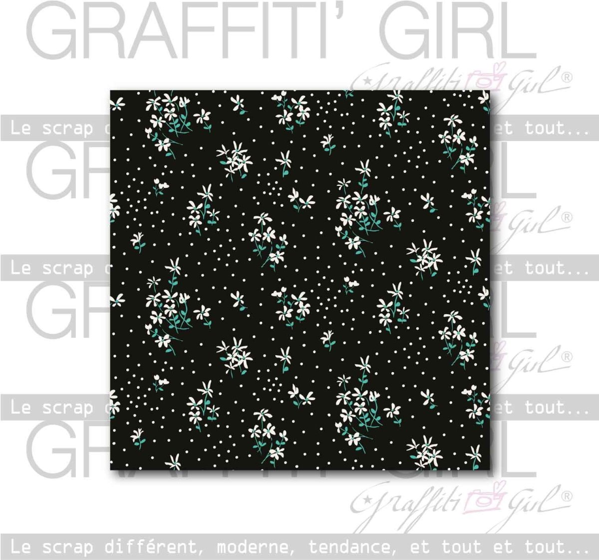 Le bloc de papiers « Au Féminin » avec son style « Liberty » de jolies fleurs, petites, mignonnettes, dans un joli combo de bleu, vert, rose et noir.