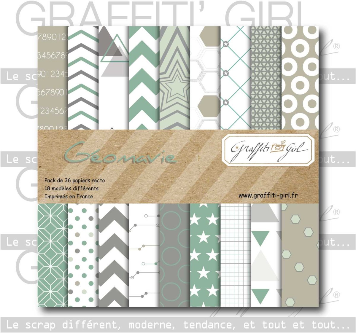 Nom: Géomavie Produit: Papiers Taille: Bloc 15×15 Marque: Graffiti Girl Collection: Géomavie Le petit plus: Combo de couleur coordonnés à la collection. Utilisation: Découpé, déchiré, tamponné, encré, en structure d’album, comme en page de scrapbooking ou tout autre loisirs créatifs.