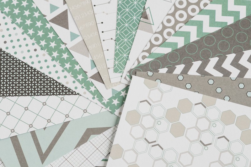 Bloc de papiers design pour scrapbooking, combo bleu et gris, style graphique