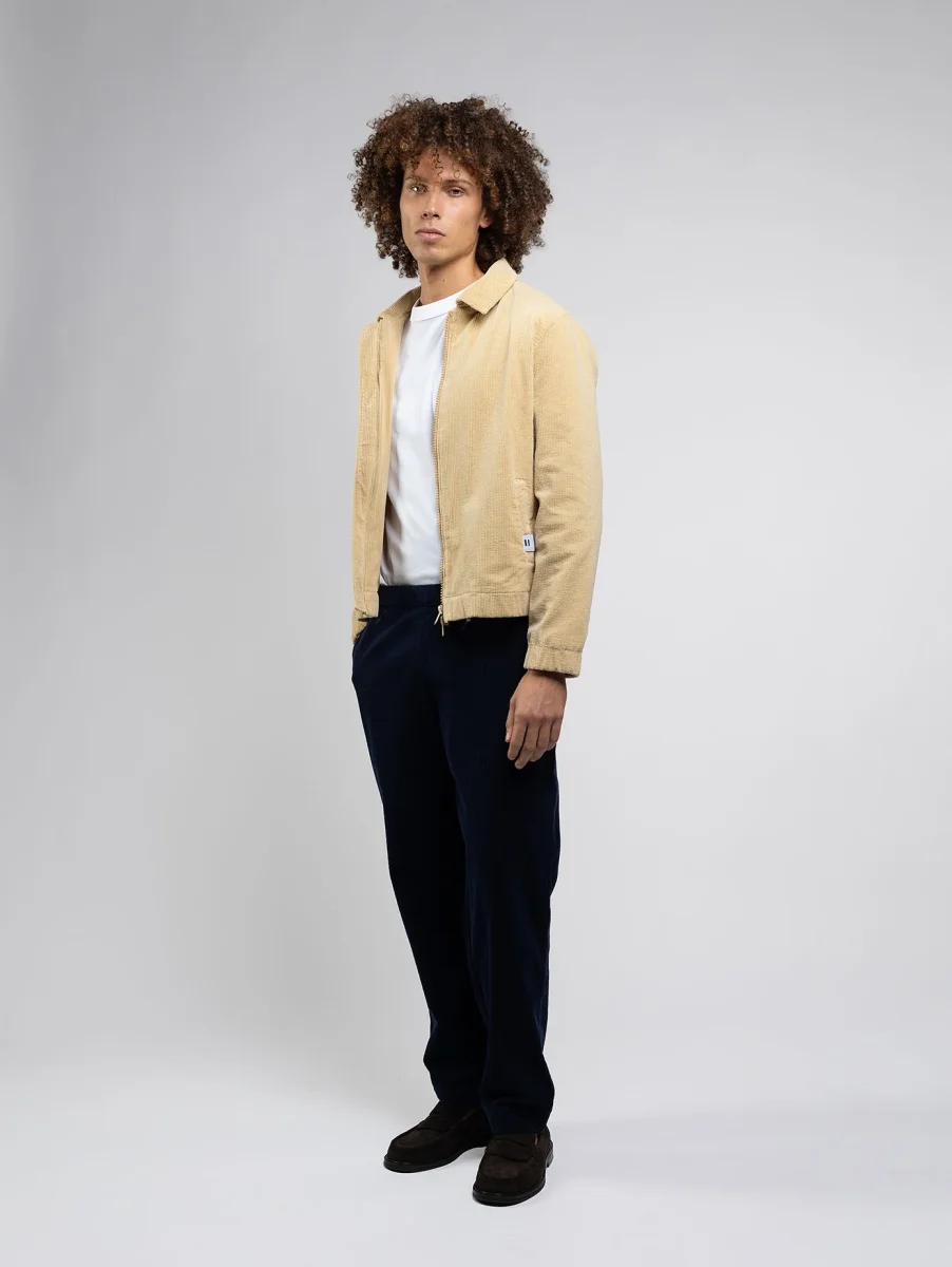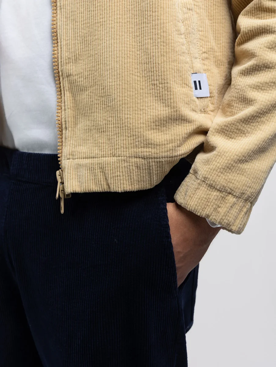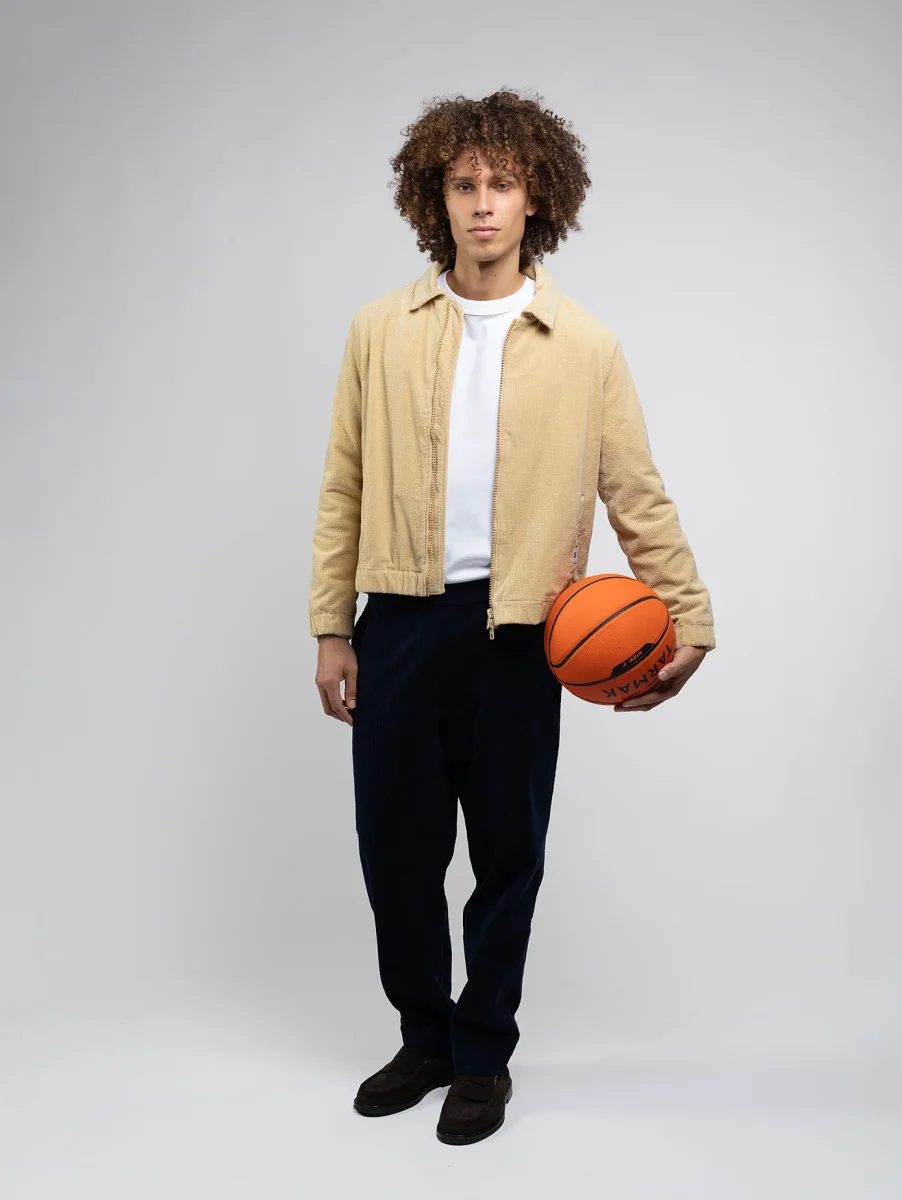 Le blouson ISAAC avec sa coupe courte, idéal pour la mi-saison. Doublé de ouatine de coton avec 2 poches latérales et 1 poche intérieure. En velours grosses cotes, tissé en France, et en coton 100% biologique