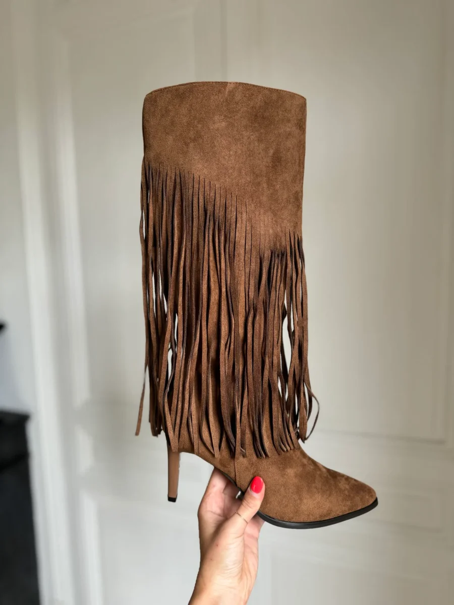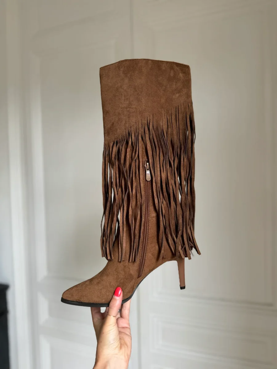 bottes aiguilles à franges camel