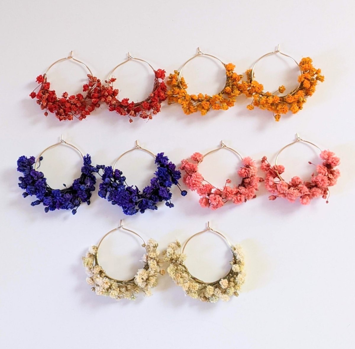 Boucles d’oreilles artisanales en gypsophiles stabilisées, Rina