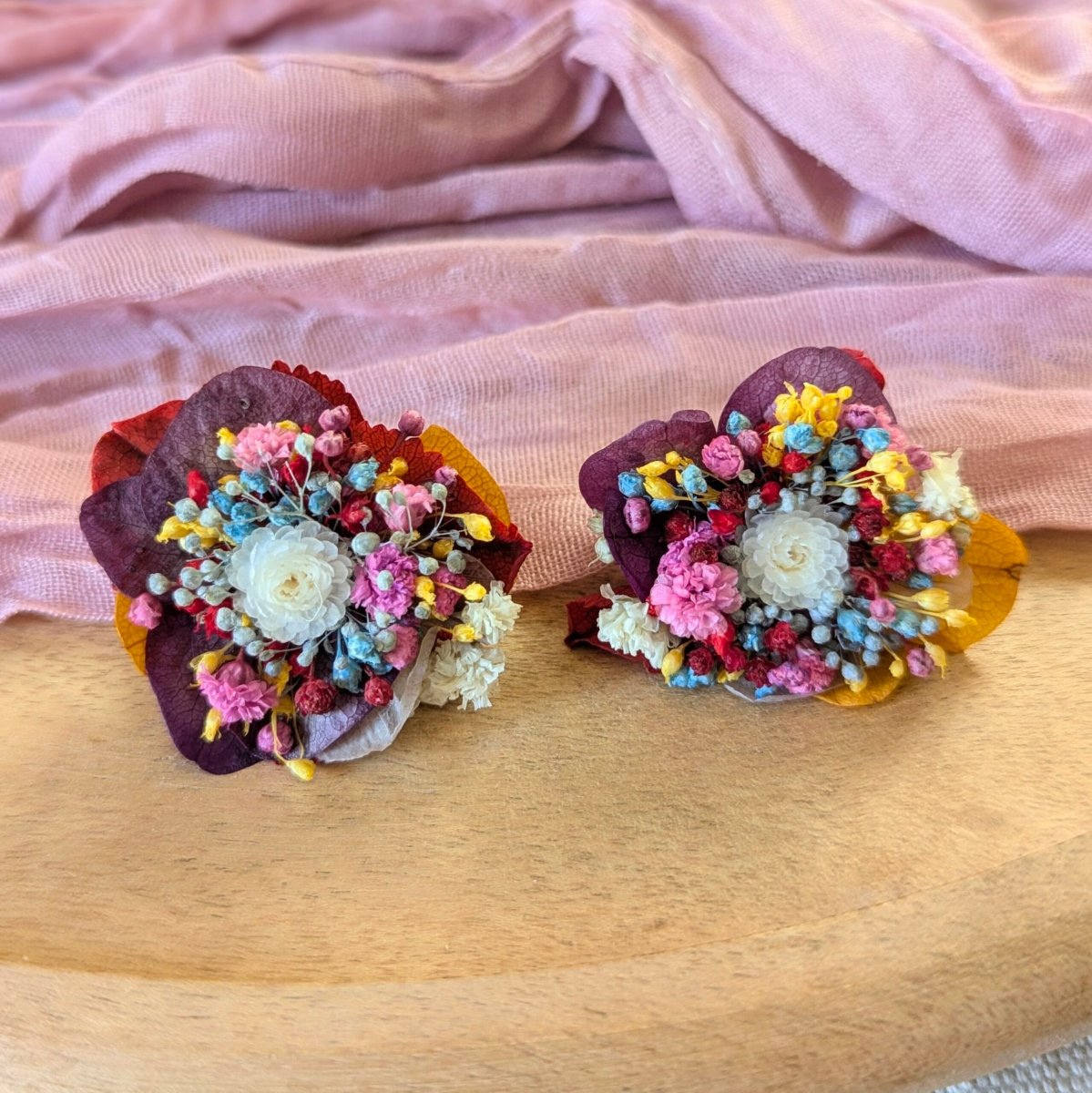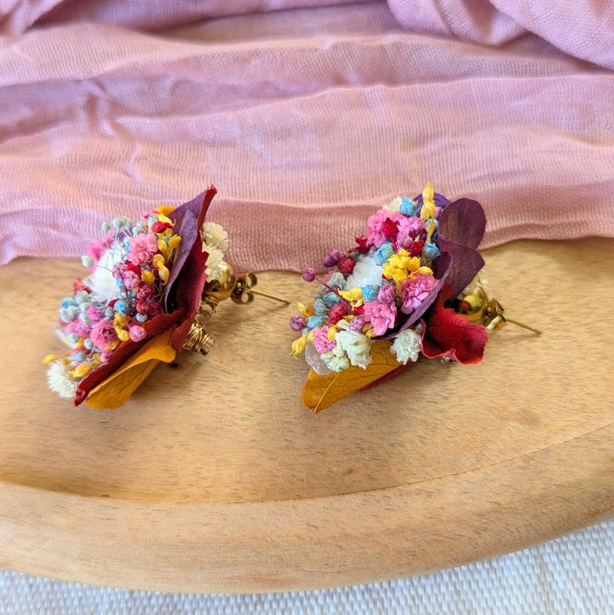 Boucles d’oreilles clou en fleurs stabilisées aux couleurs chatoyantes, Justine