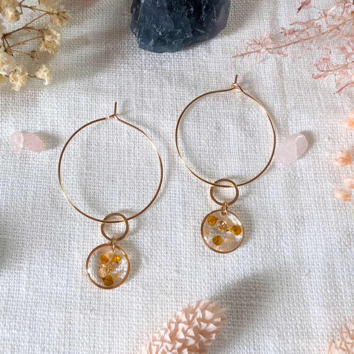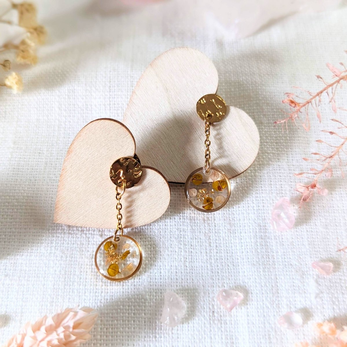 Boucles d’oreilles en fleurs séchées safran, Louise