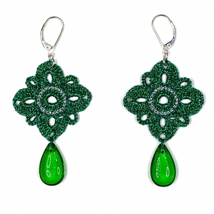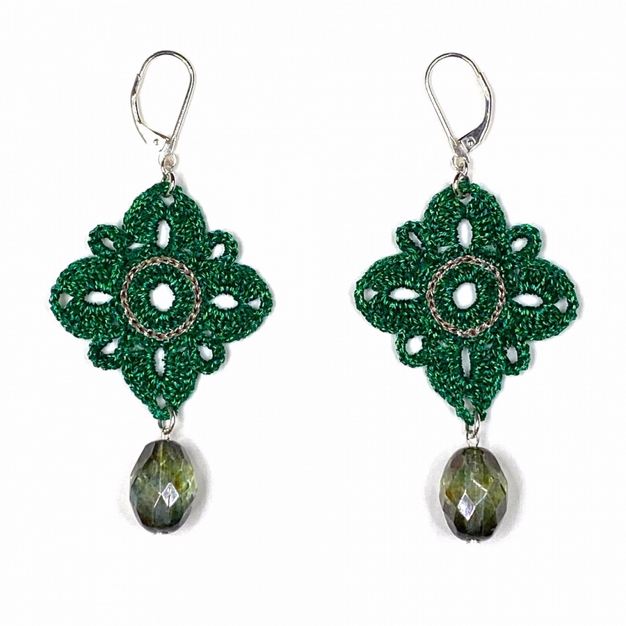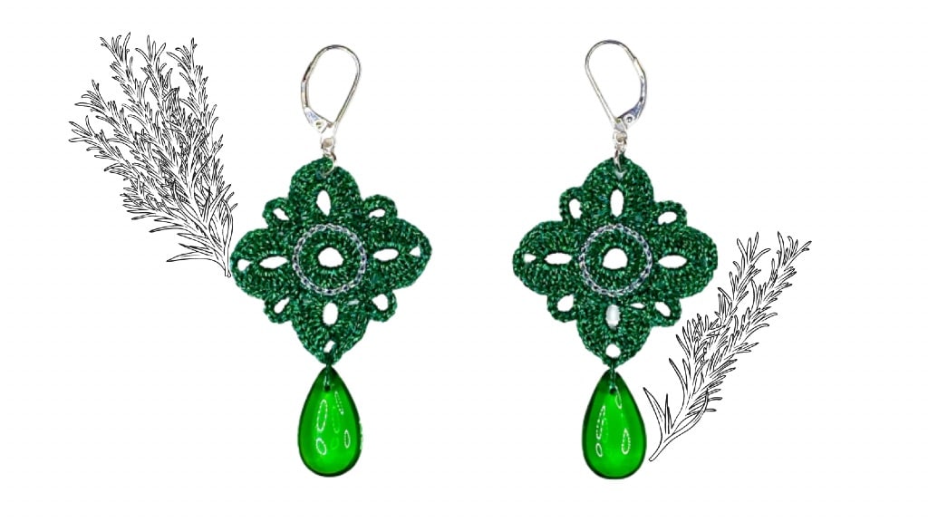 Toute l’histoire des bijoux en dentelle au crochet by Edith a commencé avec ce modèle de boucles d’oreilles de forme losange. C’est le modèle Original.