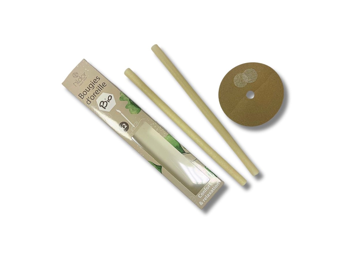 La bougie d’oreille Nildor est produite en France avec des produits 100% biosourcés.Sans aluminium.Pure cire d’abeille biologique. Coton biologique certifié GOTS. Vendues par boite de 2 bougies + 1 disque de protection + 2 ronds de protection en coton Les effets principaux : La dépression créée par la bougie dans le conduit auditif stimule la sécrétion de cérumen et la chaleur produite par la bougie a une action émolliente qui accélère son évacuation, ce qui débouche les pores du conduit auditif et élimine le cérumen souillé. La chaleur combinée au crépitement de la flamme procure une sensation de bien-être et…