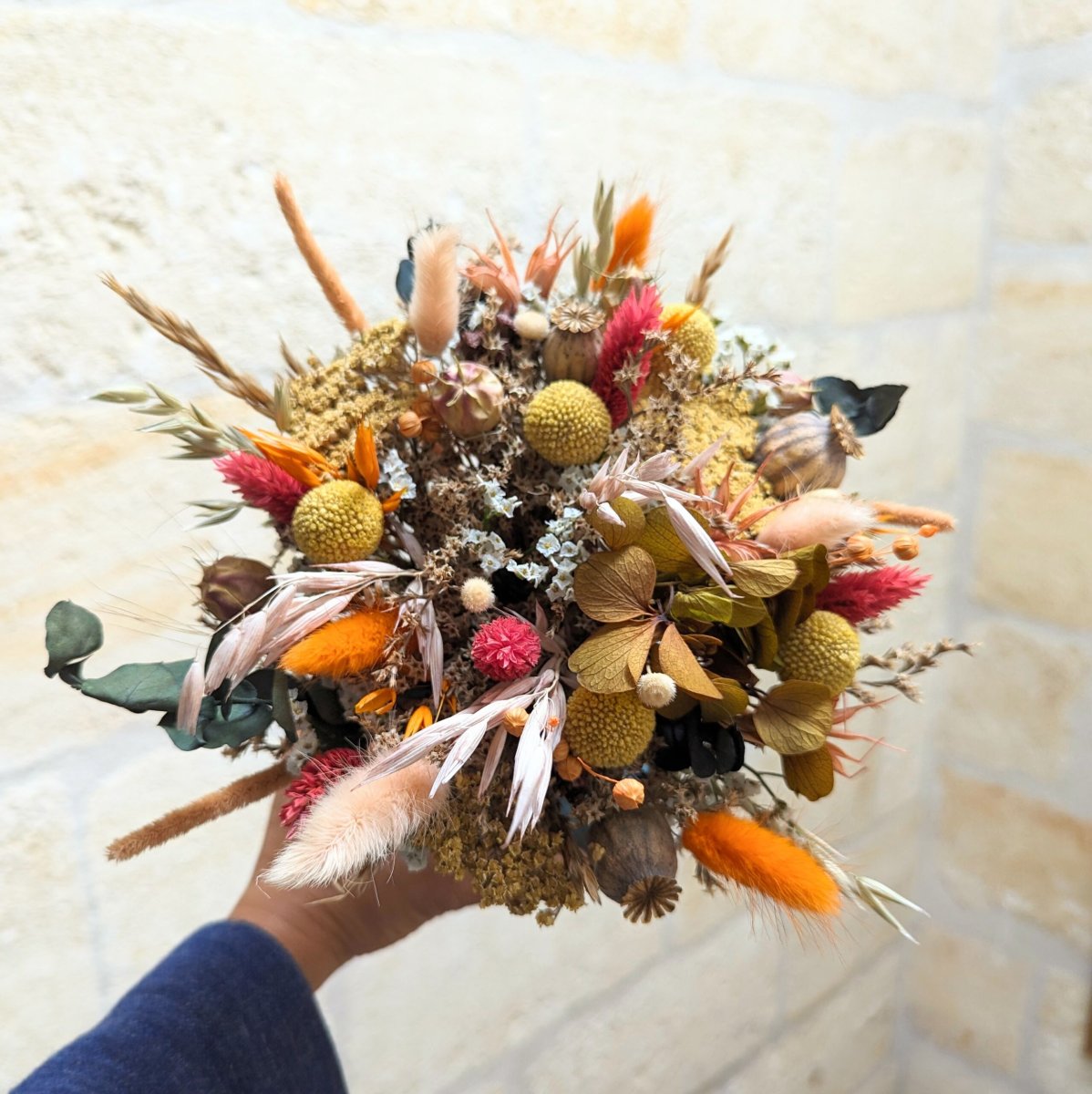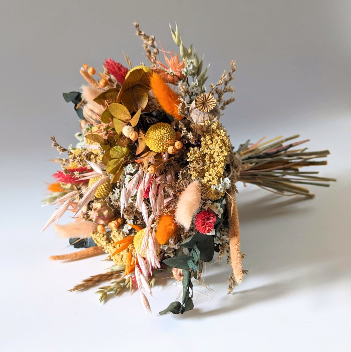 Bouquet bohème en fleurs stabilisées jaunes et oranges, Lana