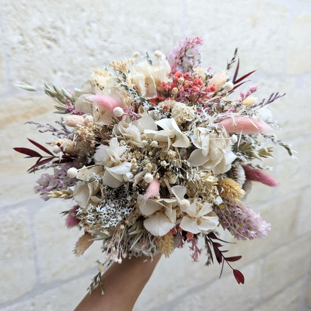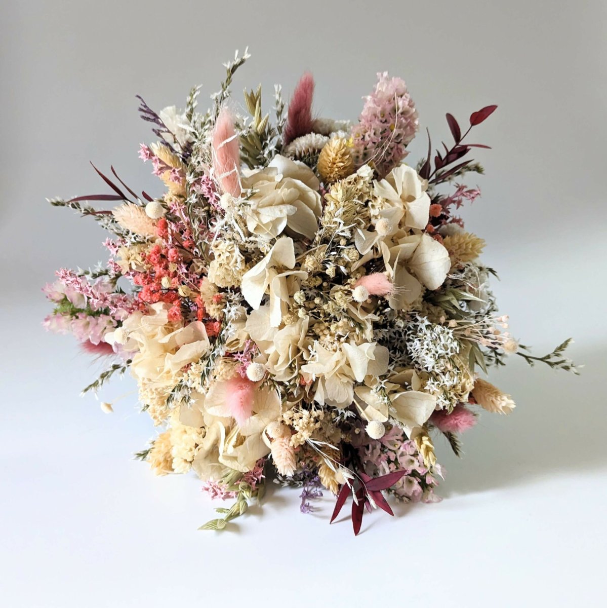 Bouquet de fleurs naturelles séchées et stabilisées aux nuances douces, Lou