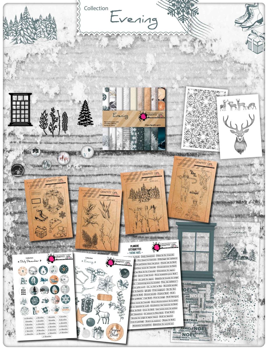 Une box de Noël complète avec des articles de scrapbooking assortis au combo de cette magnifique collection Evening.