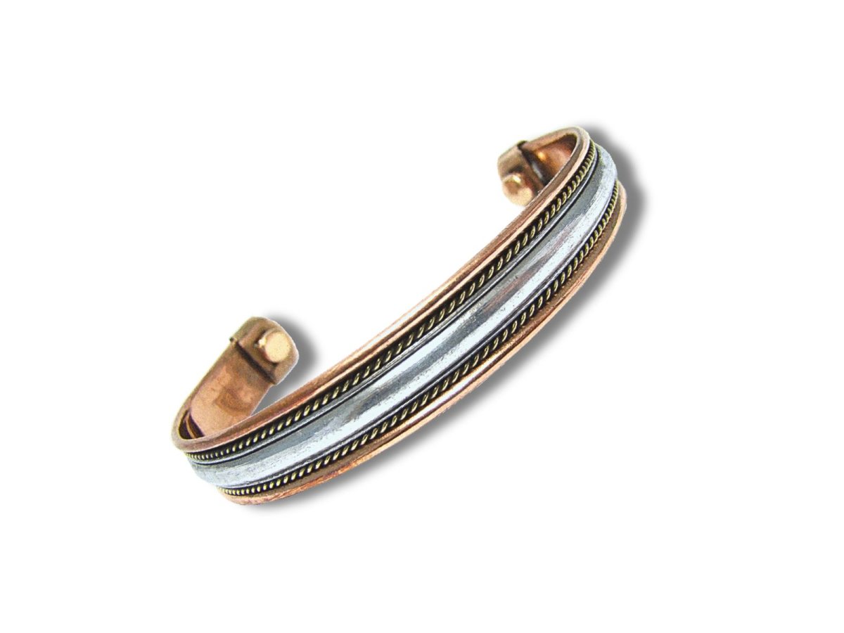 Bracelet en cuivre, fantaisie (le metal argenté est présent uniquement sur le dessus, l’intérieur est composé à 100% de cuivre)
