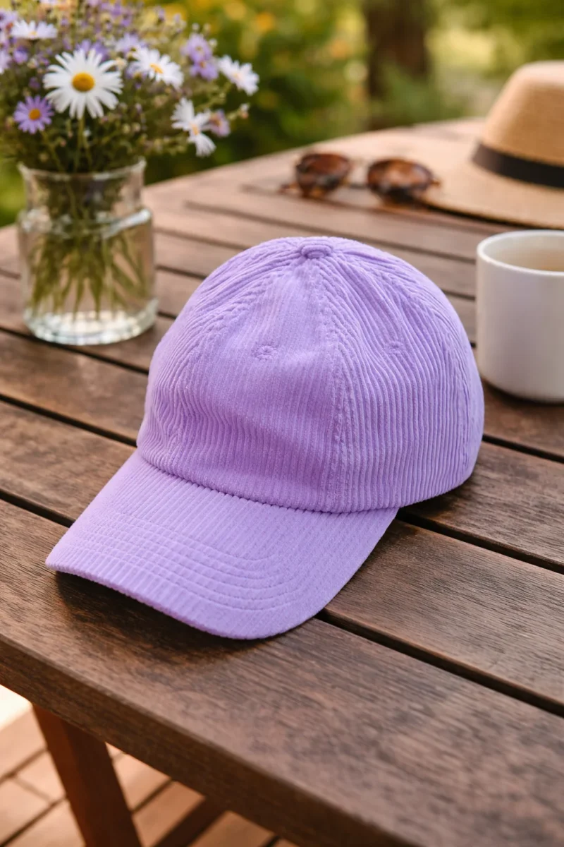 Baseball cap unisexe en velours côtelé. Bretelle réglable à l’arrière. 100% coton. Idéale pour la saison.
