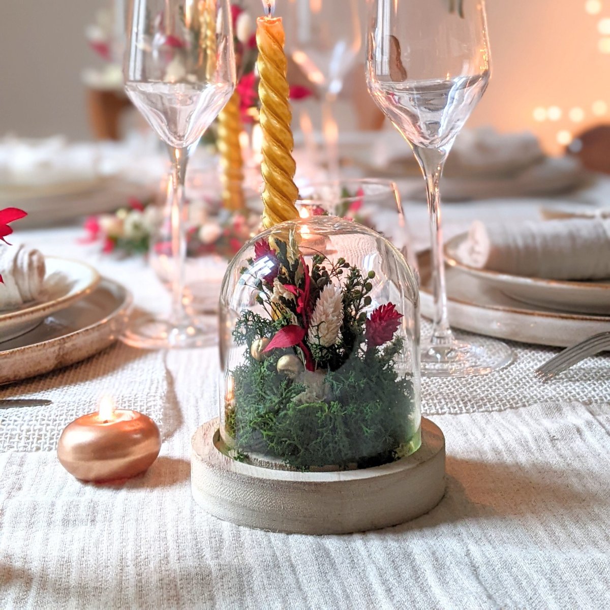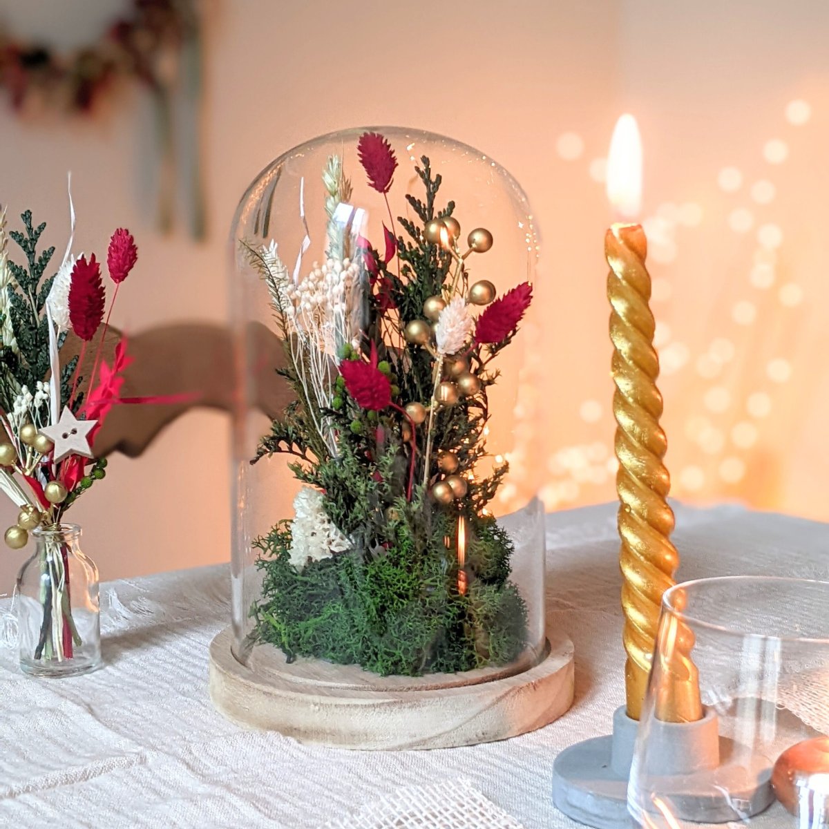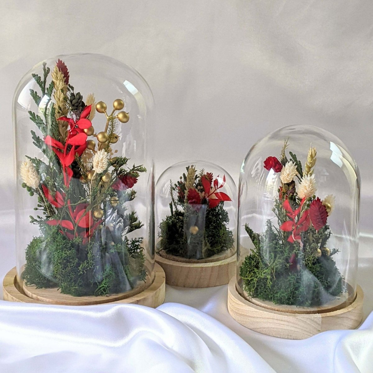 Cloche en verre avec fleurs stabilisées aux couleurs de Noël, Jingle Bell
