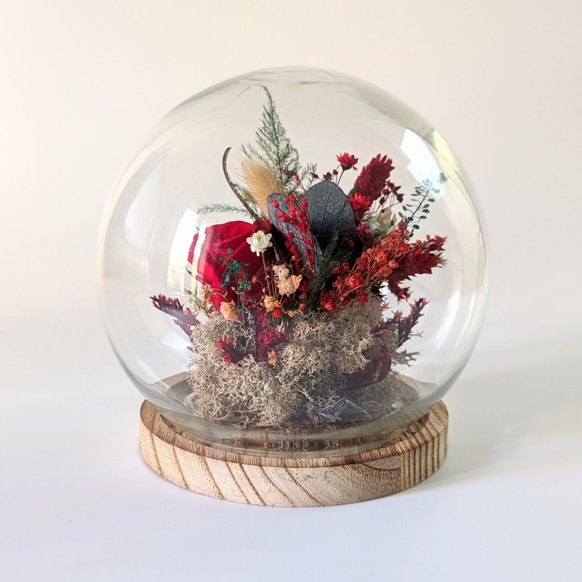 Cloche de fleurs séchées aux couleurs rouges et vertes, Sofia