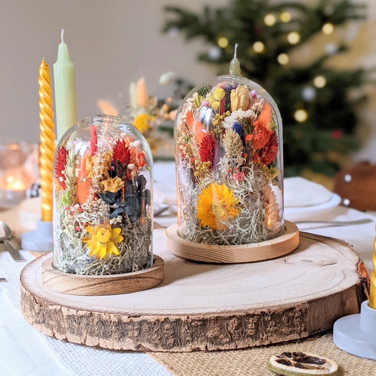 Cloche de fleurs séchées aux couleurs rouges et vertes, Sofia