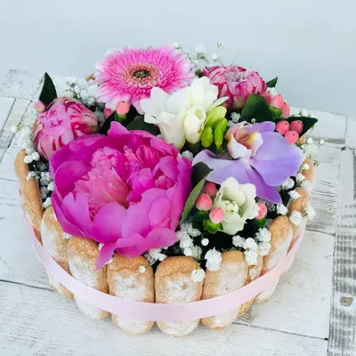 Compositions Florales basses, Fleurs de Saison, forme Gâteau