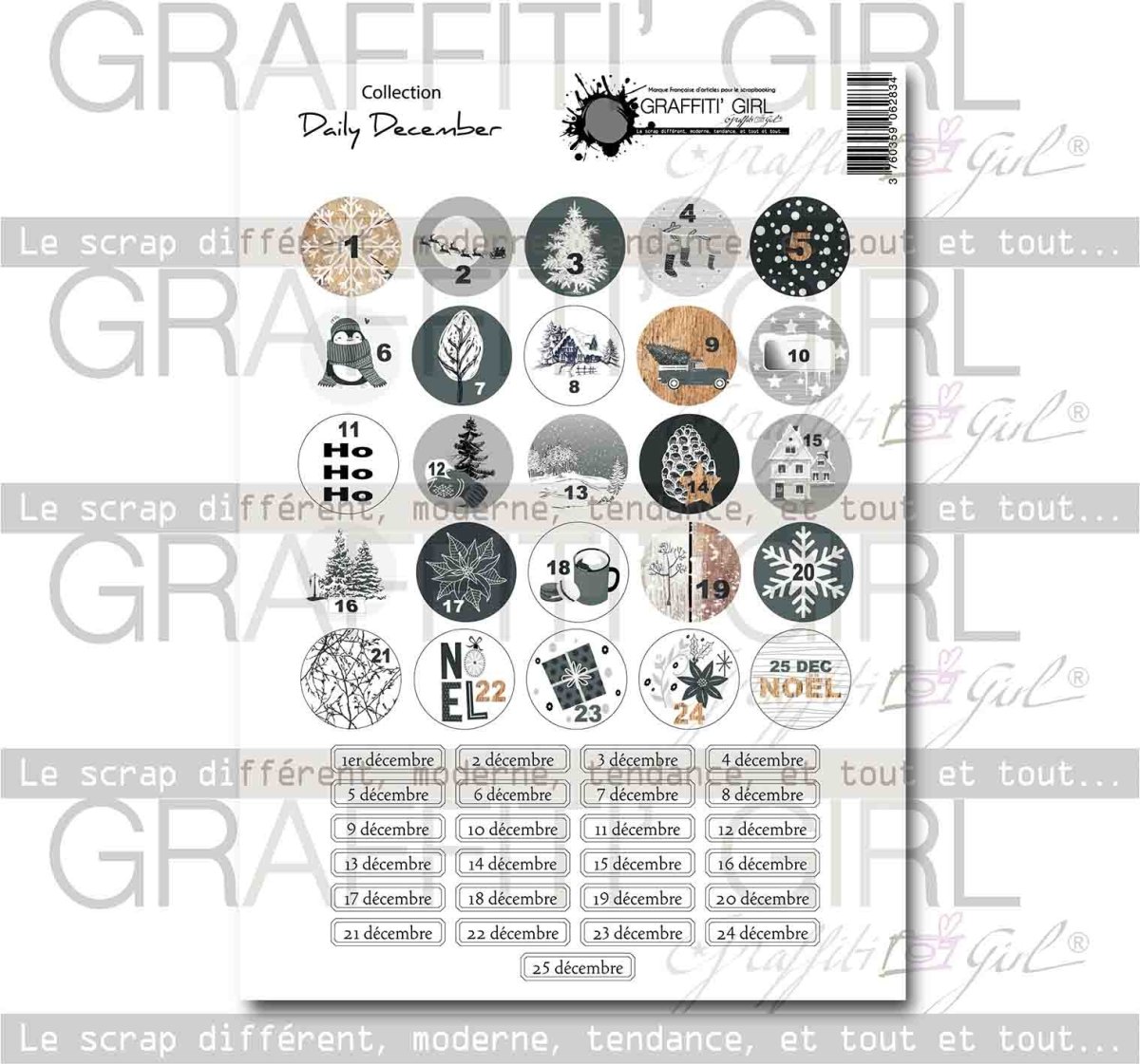Planche de die-cuts «Daily december» – Graffiti Girl