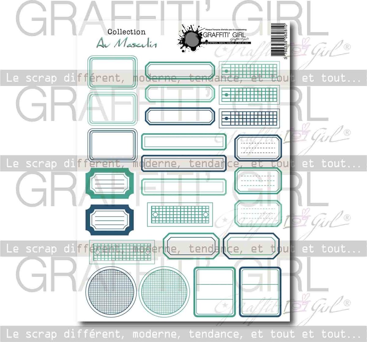 Planche d’étiquettes assortis à la collection «Au masculin» – Graffiti Girl