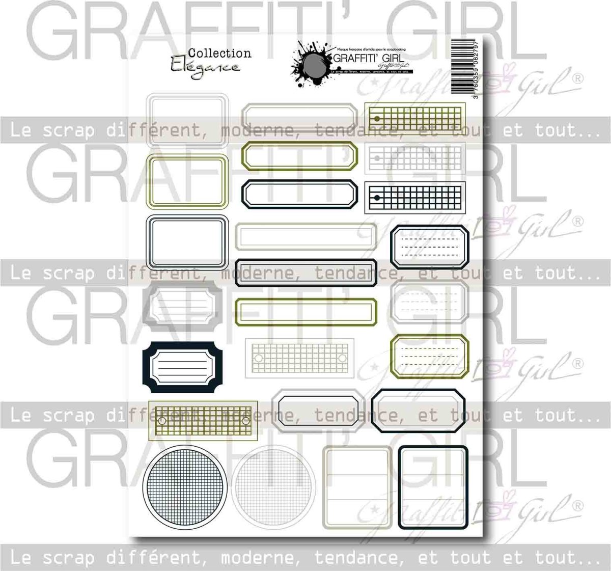 Ces étiquettes sont assorties au combo de la collection « Elégance» des coloris élégants, marine, gris, kaki.