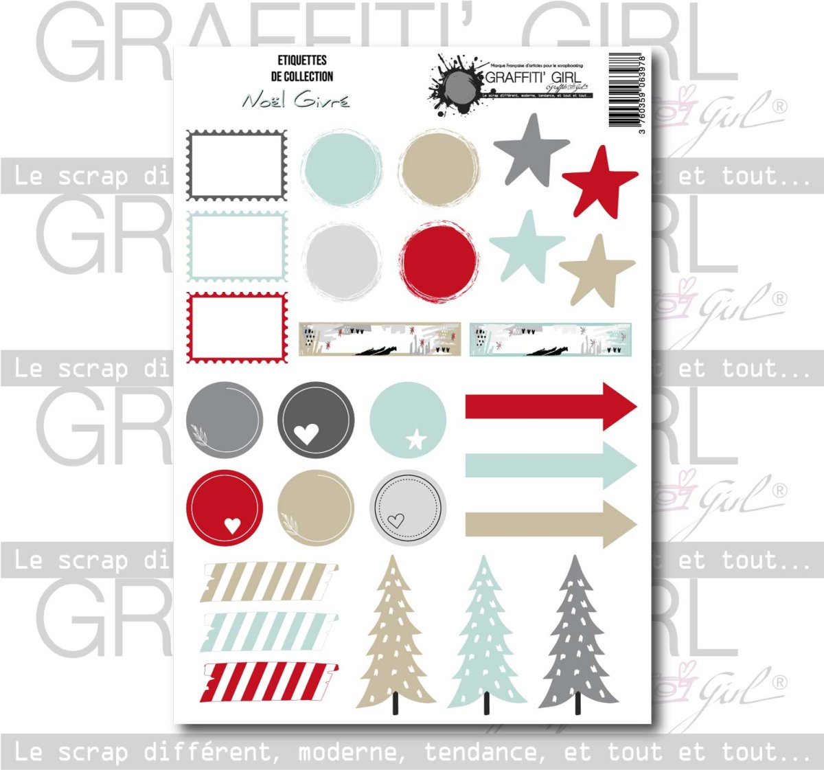 Nom : étiquettes Noël givré Produit : Die-cut Taille : 14,8cm x 21cm Marques : Graffiti Girl Collection : Noël givré Utilisation : Des jolis chipboards à découper et à coller comme embellissements dans vos projets de scrapbooking