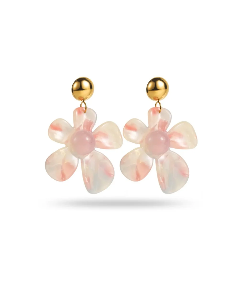 Ajoutez une touche de douceur à votre look avec les boucles d’oreilles Énora en forme de fleurs aux nuances pastels délicates. Leurs cabochons dorés illumineront votre visage. La partie en résine les rendent agréable à porter car le modèle est léger.