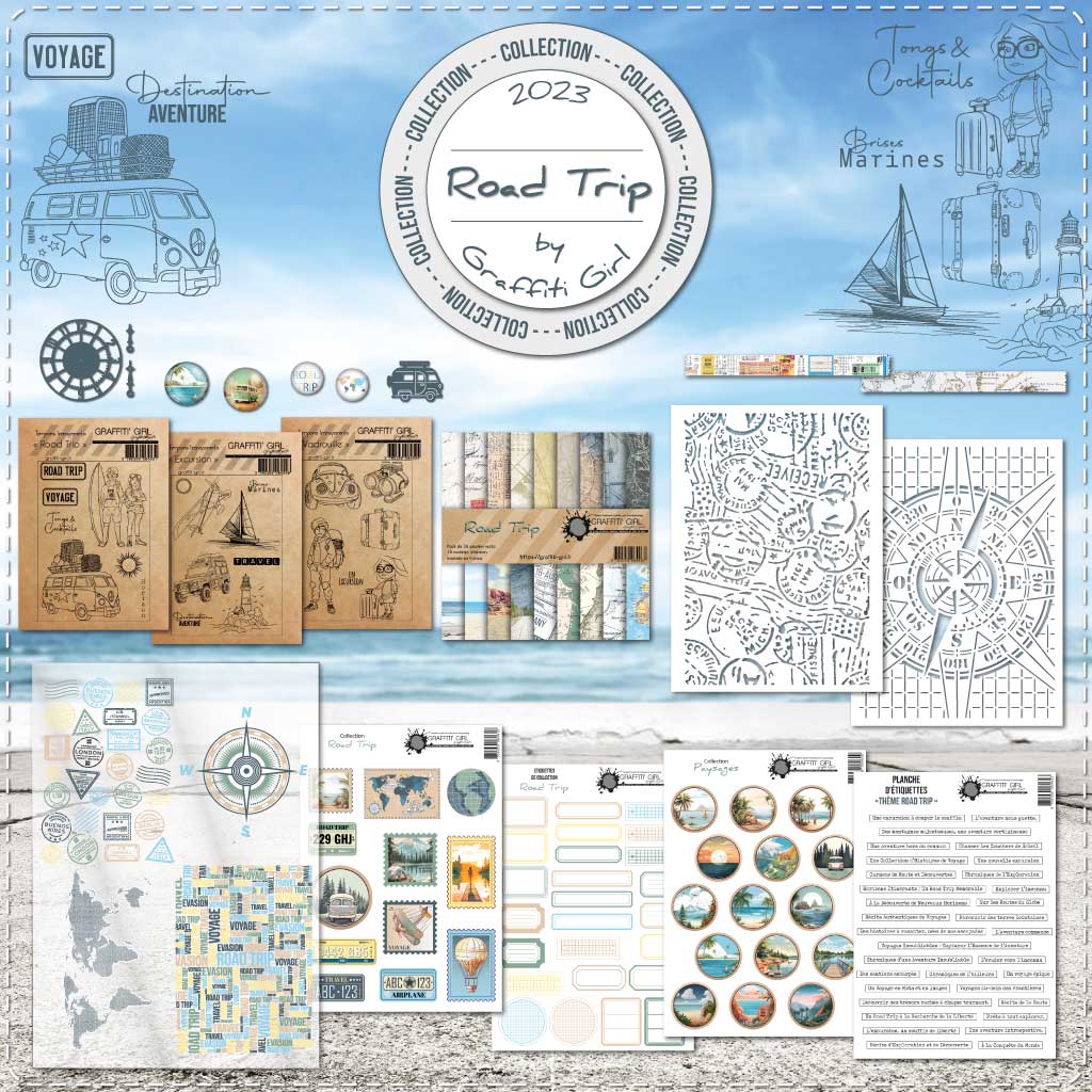 Nom du produit : Pack Road Trip Produit: Pack collection complète Marque: Graffiti Girl Collection: Road Trip Le petit plus: 10% d’offert Utilisation: Kit complet de scrap pour réaliser tout type de projet en scrapbooking.