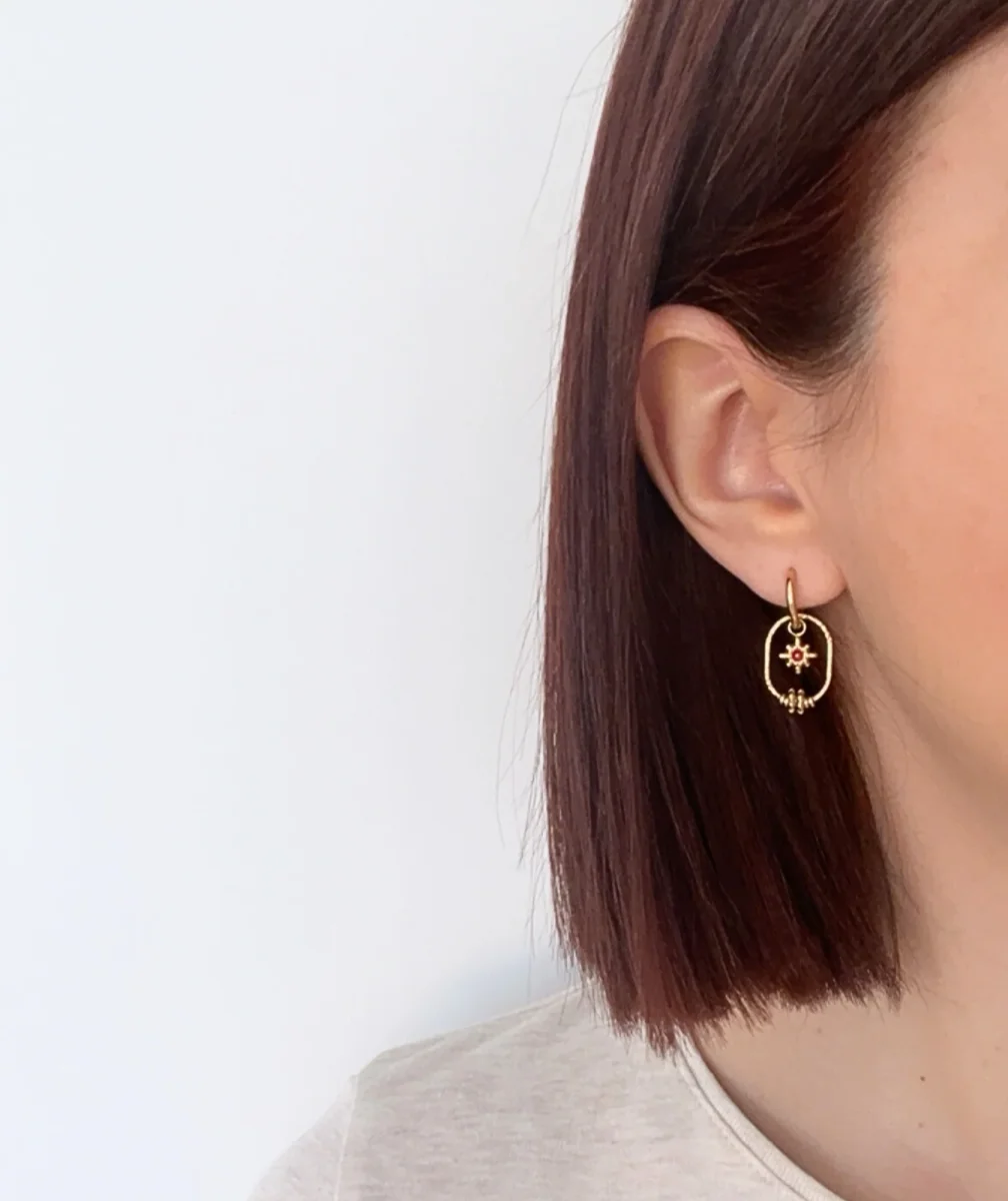 Ces créoles dorées en acier inoxydable sont sublimées par un médaillon ovale au centre duquel rayonne une étoile délicate sertie d’une petite perle rose. L’alliance parfaite entre symbolique solaire et féminité assumée. Une paire légère et lumineuse à porter au quotidien ou pour illuminer une tenue. À shopper sur TWOBE-SHOP.FR ou en boutique à Dax.