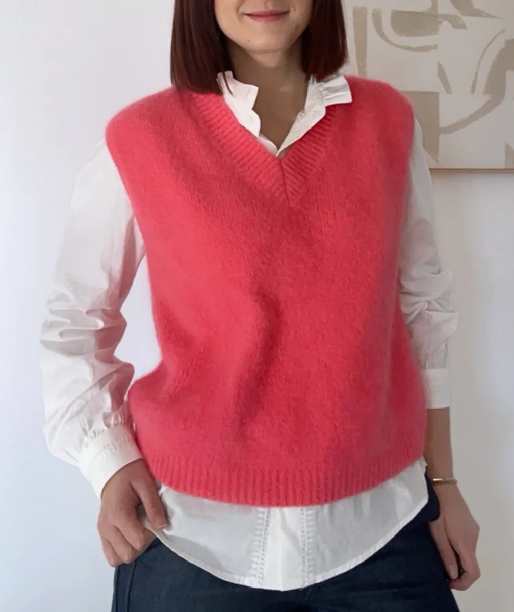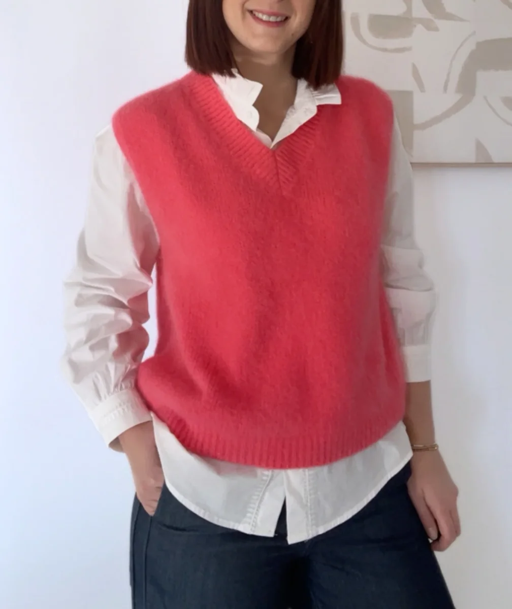 Apportez de la lumière à votre dressing avec ce pull sans manches femme rose corail à la maille douce et moelleuse. Sa coupe droite confortable et son col V structuré en font une pièce facile à superposer sur une chemise ou un t-shirt. Idéal en mi-saison comme en hiver, ce pull col V femme modernise instantanément une tenue casual ou chic.