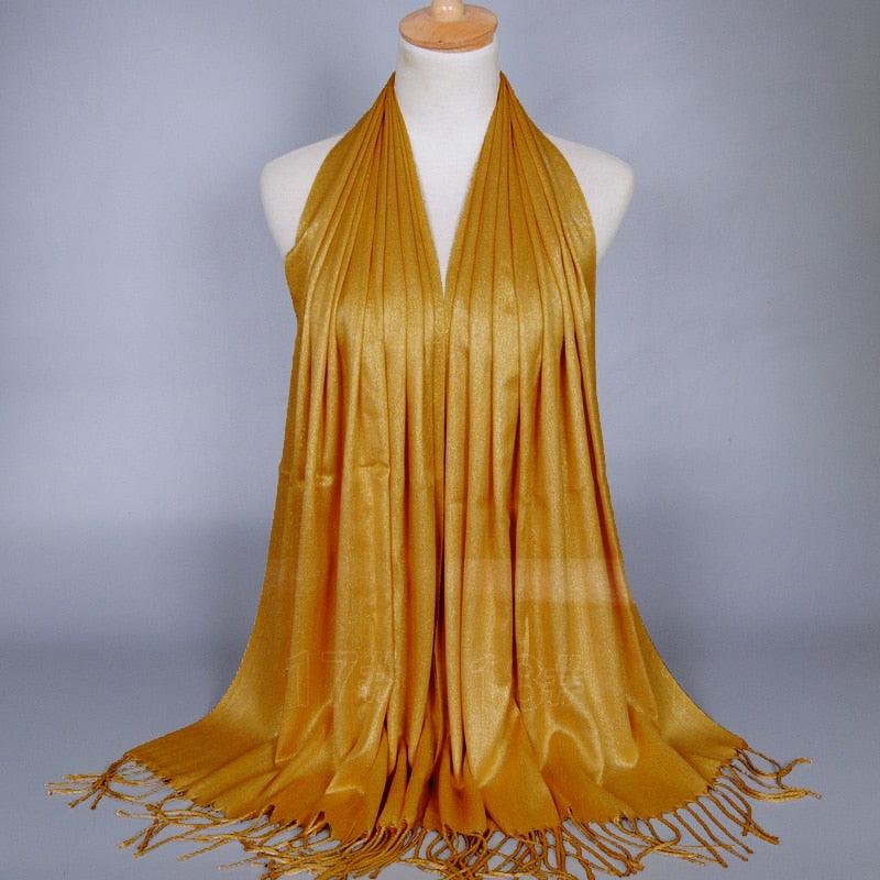 Ce foulard en Lurex paillettes doré est le complément parfait pour ajouter une touche d’éclat à votre tenue de mariage, de fête ou pour une soirée spéciale. Confectionné avec du coton de haute qualité, ce foulard uni est à la fois confortable et élégant, faisant de vous la star de la soirée.