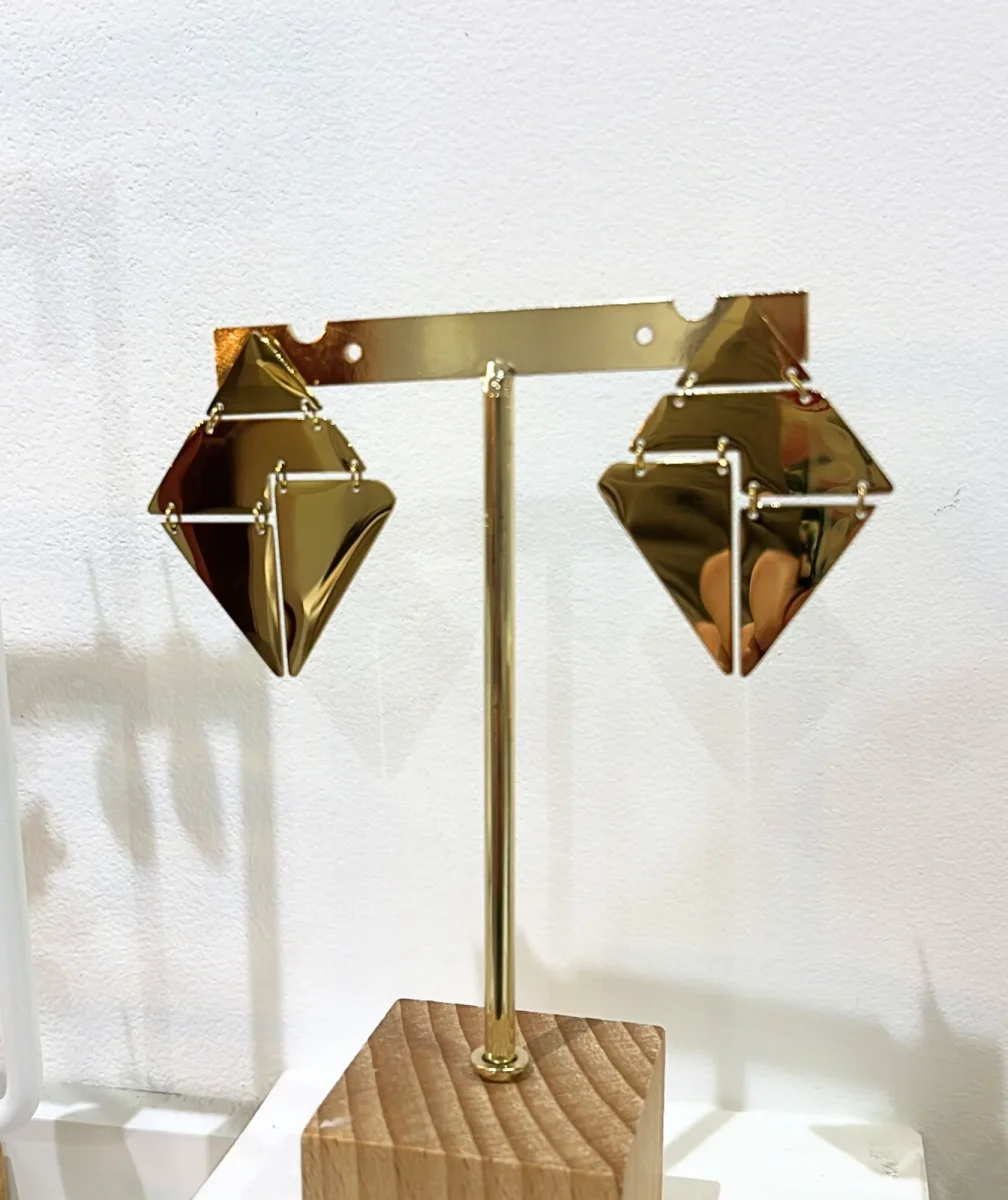 Ginna – Boucles d’oreilles losanges dorés graphiques