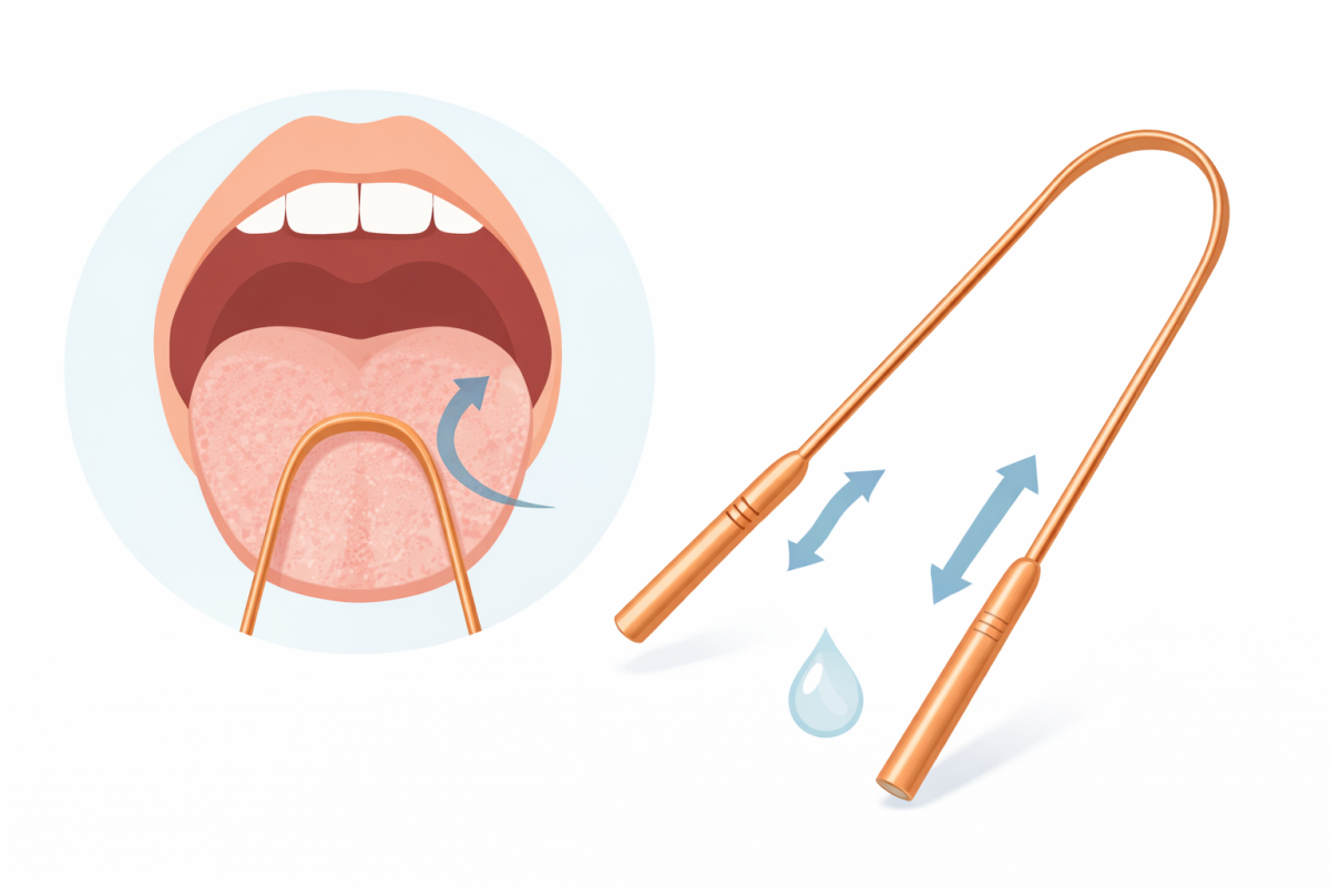 Le gratte-langue ergonomique en cuivre est un accessoire simple et efficace à intégrer dans une routine d’hygiène bucco-dentaire quotidienne.
