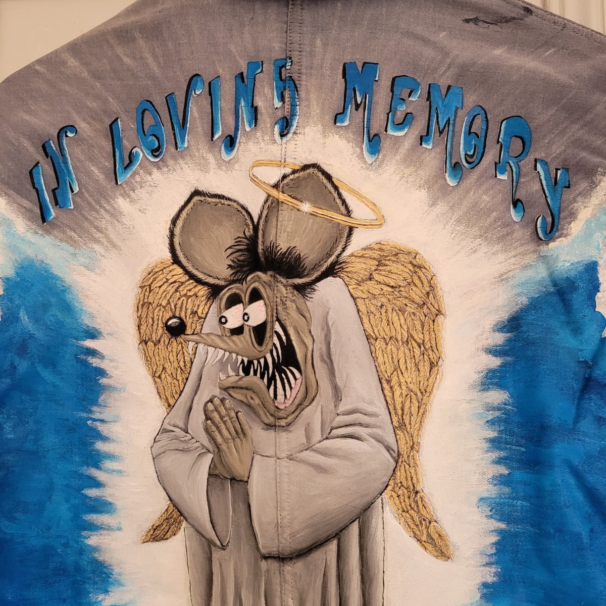 In loving memory of ED « Big Daddy » Roth handpainted french 50’s moleskin jacket Rat Fink Angel