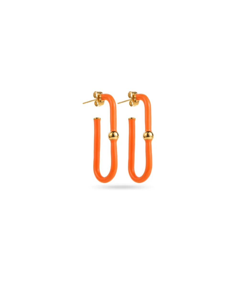 Ajoutez du peps à votre tenue avec ces créoles oranges au design graphique et audacieux. Leur forme géométrique originale et leur teinte vitaminée rehaussée de touches dorées en font un accessoire parfait pour l’été, un apéro ou un festival. Elles captent le regard et affirment votre style avec caractère.