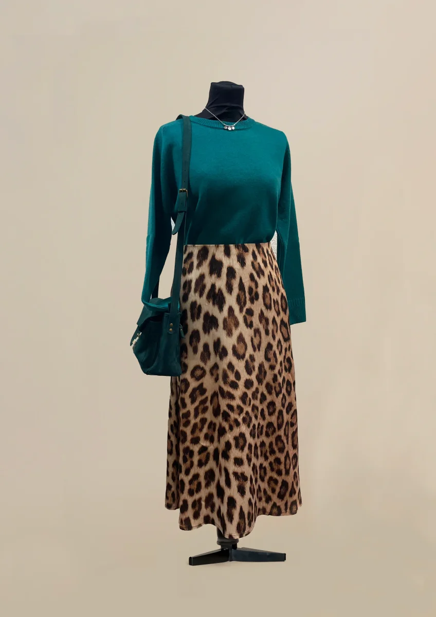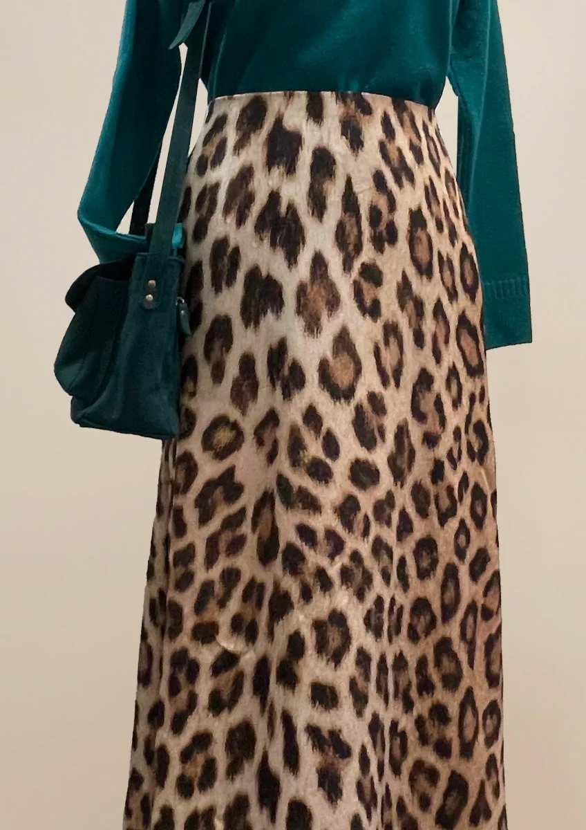 La jupe Fanny se porte taille haute, elle allie confort et glamour, mettant en valeur la beauté intemporelle du motif panthère 🐆