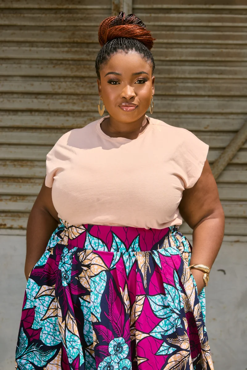 Jupe patineuse grande taille en Wax.