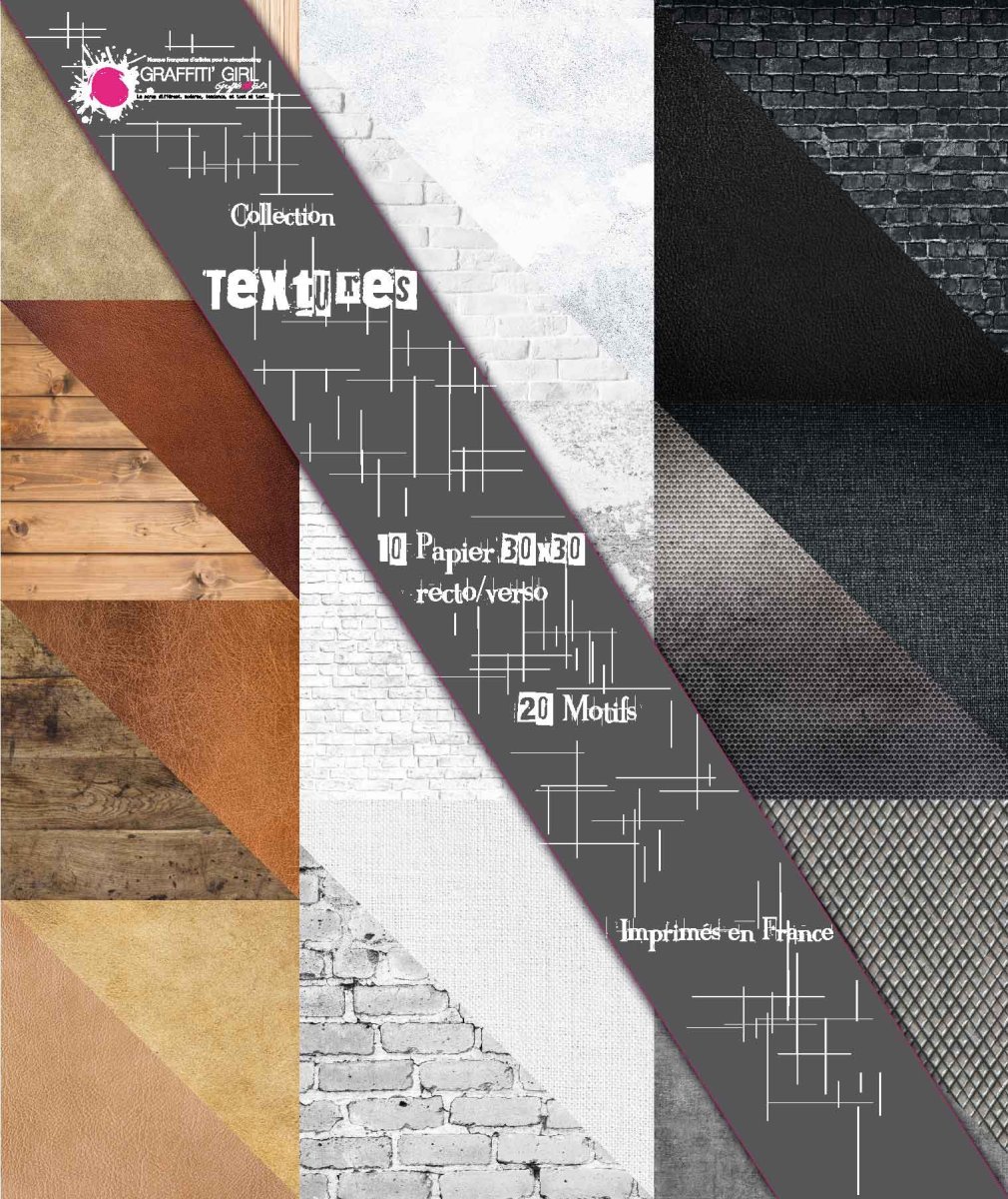 Lot de 10 papiers scrapbooking « Textures » – Graffiti Girl