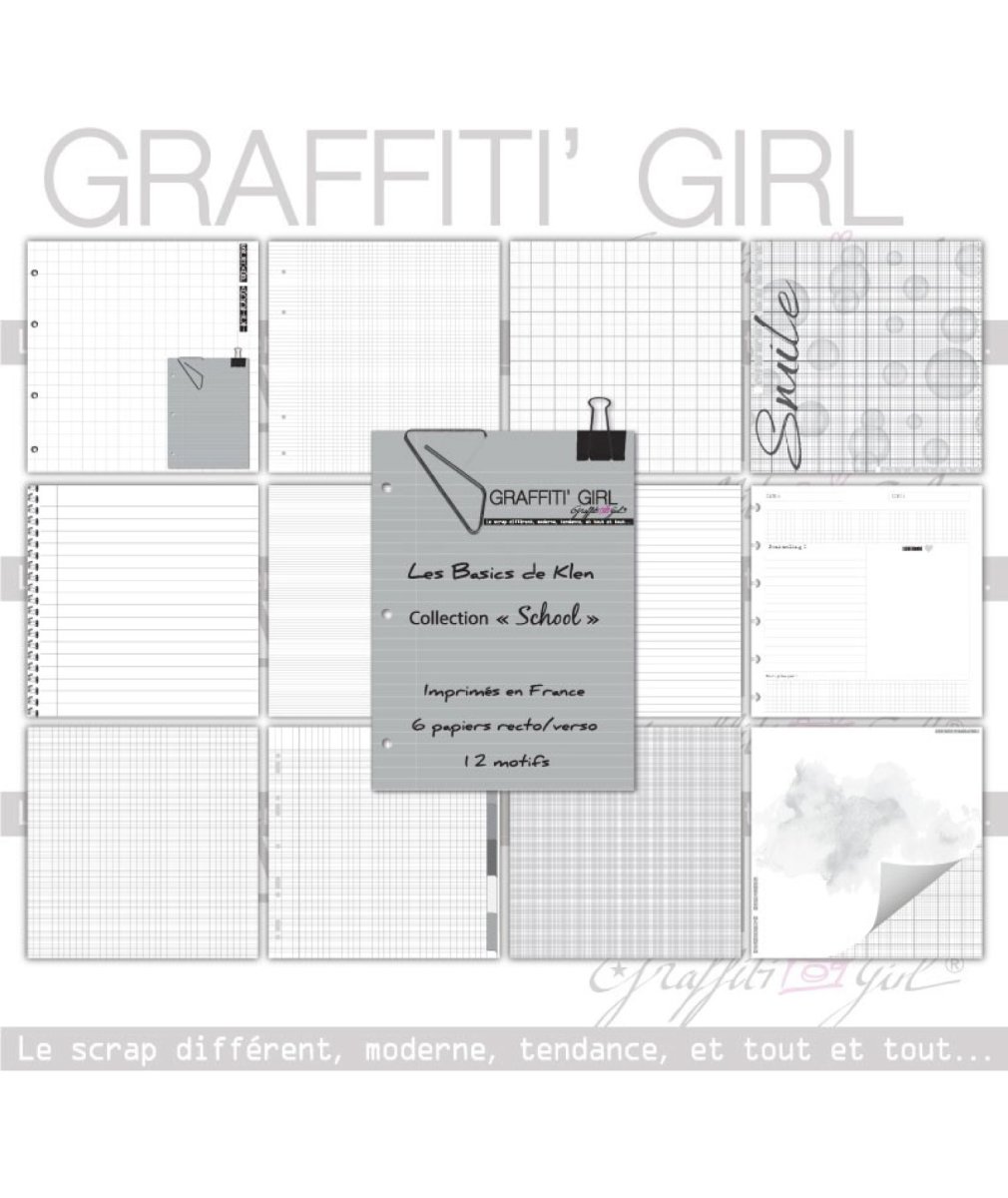 Lot de papiers scrapbooking « School » – Graffiti Girl