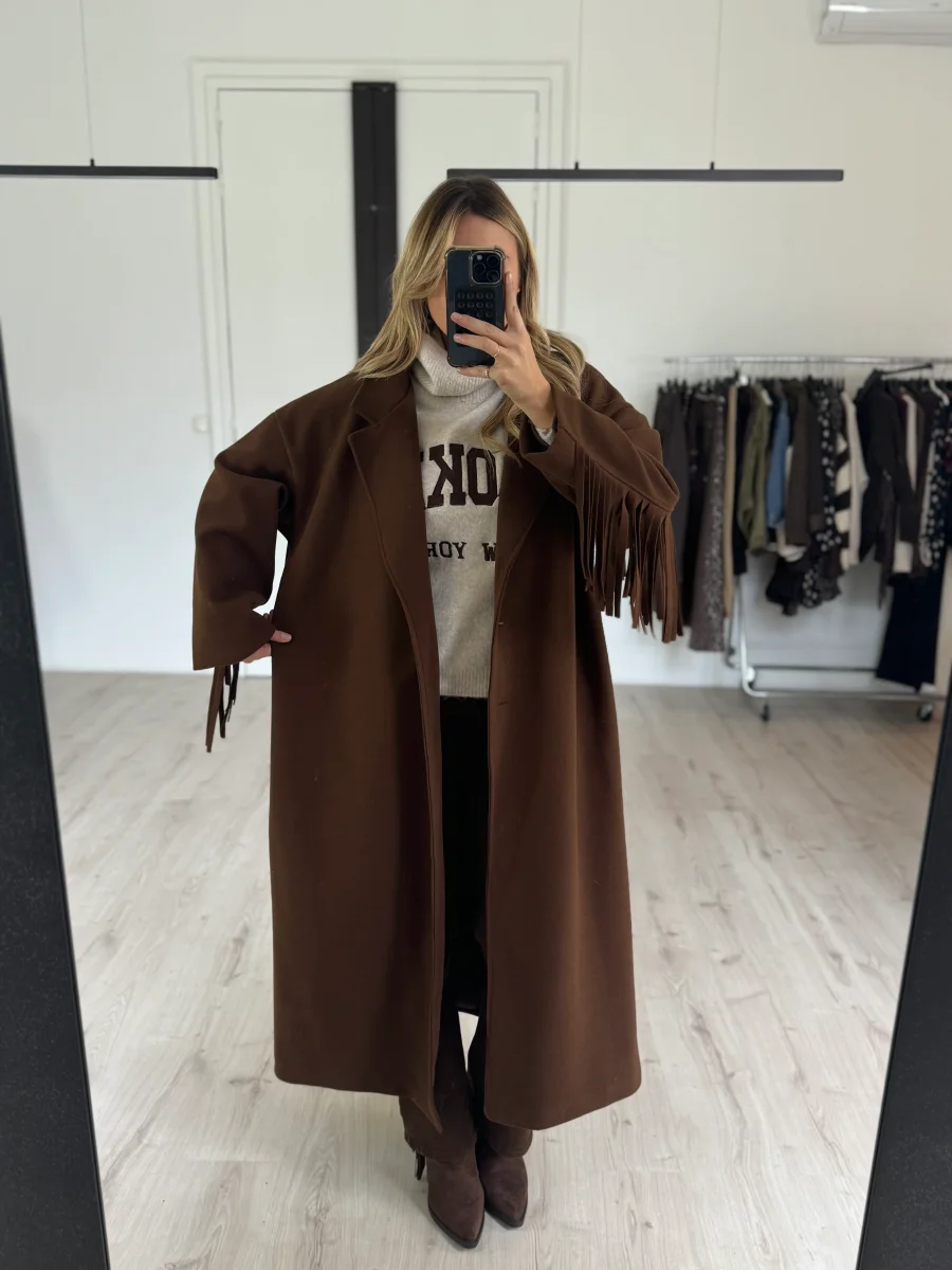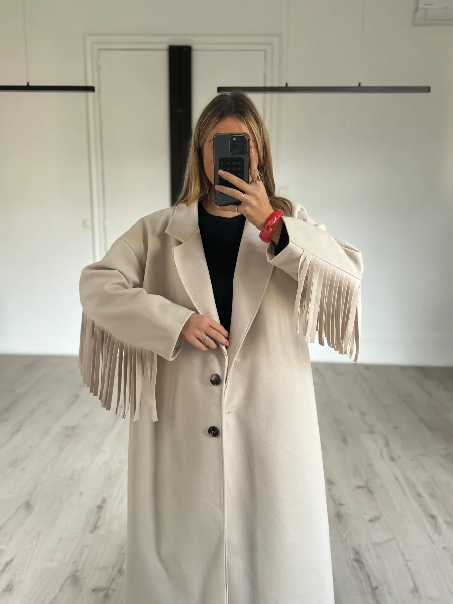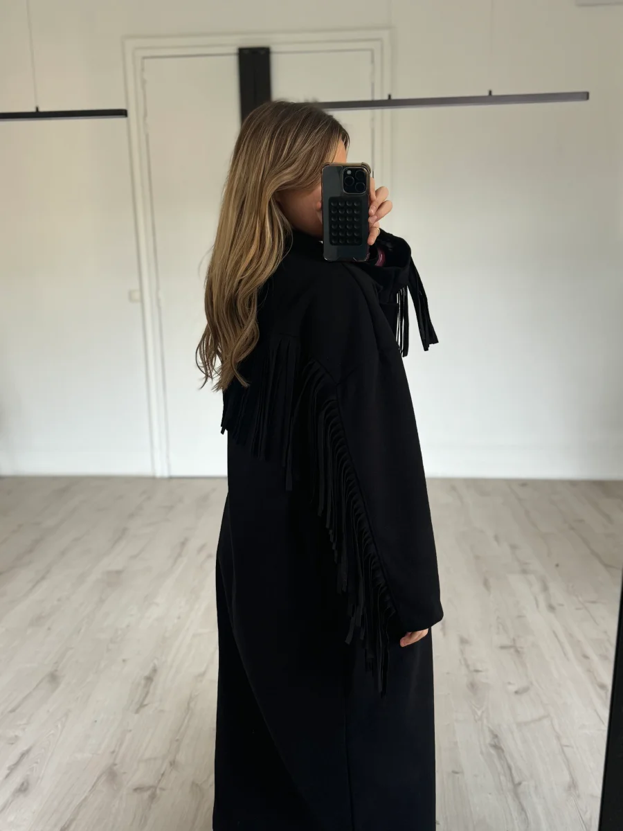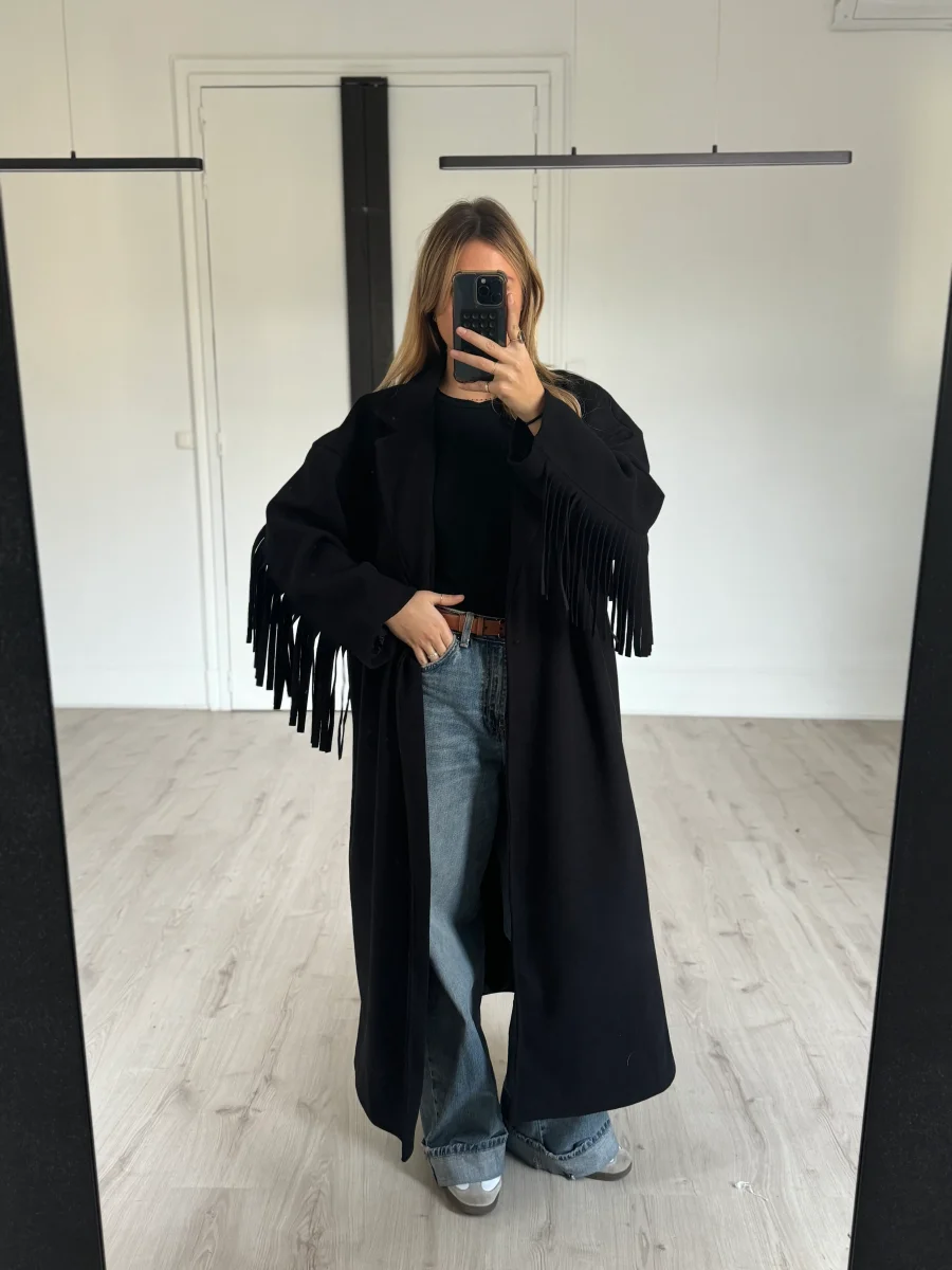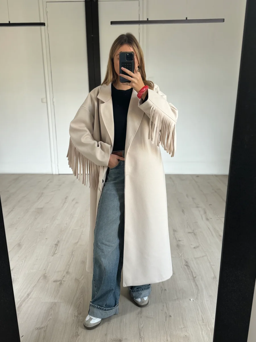 Taille unique Jade mesure 1m68 Existe en beige, noir, chocolat Coupe Overzise Pas de proches Environ taille 46 maximum Fabrication ITALIE Composition : 100% Polyester